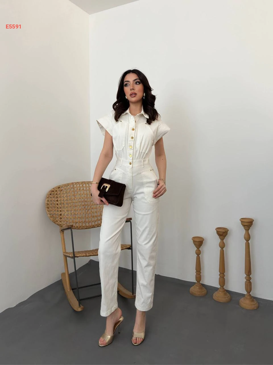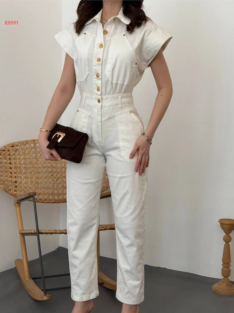 جمبسوت جينز أبيض بنصف أزرار