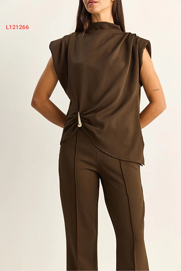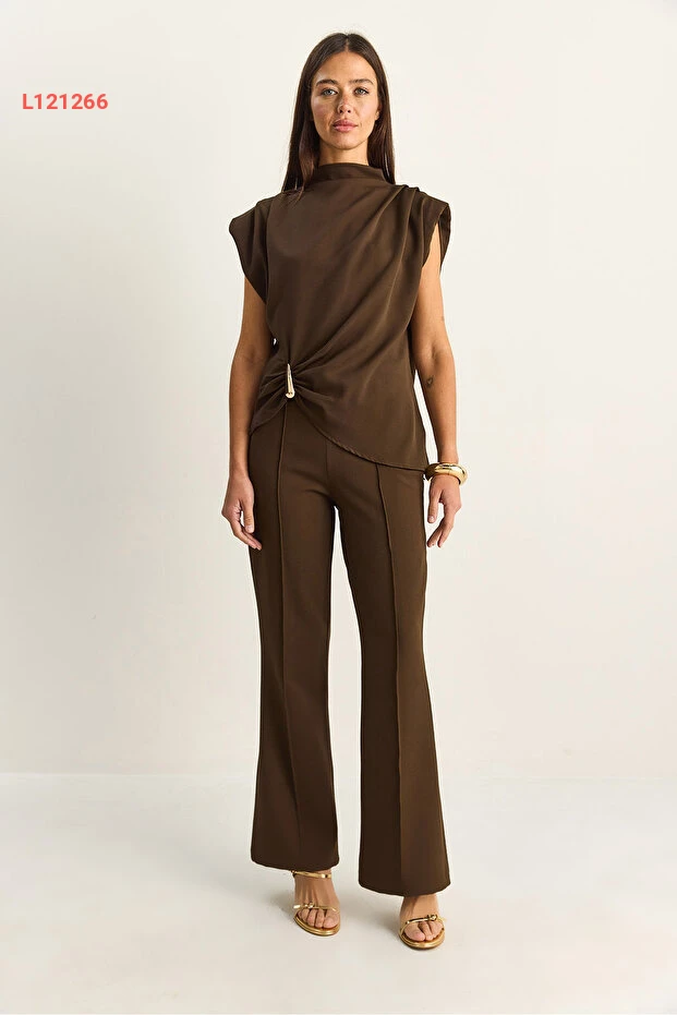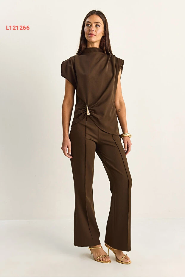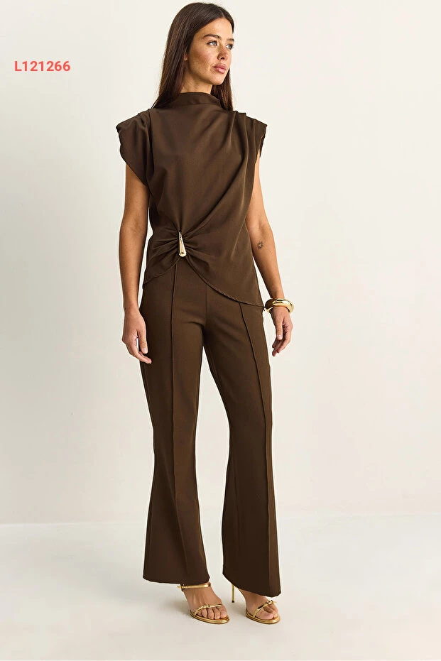 استمتعي بالأناقة العصرية مع طقم Bianco Lucci الذي يجمع بين بلوزة مزينة بالتفاصيل الأنيقة وسروال عالي الخصر مغزول بالتفاصيل الفريدة. يضمن لك هذا التصميم توفير راحة قصوى وملائمة مثالية، مما يجعله الخيار المثالي لكل المناسبات، من اللقاءات الرسمية إلى السهرات المسائية. ارتقي بإطلالتك وأبرزي أنوثتك مع هذا الطقم الفاخر.