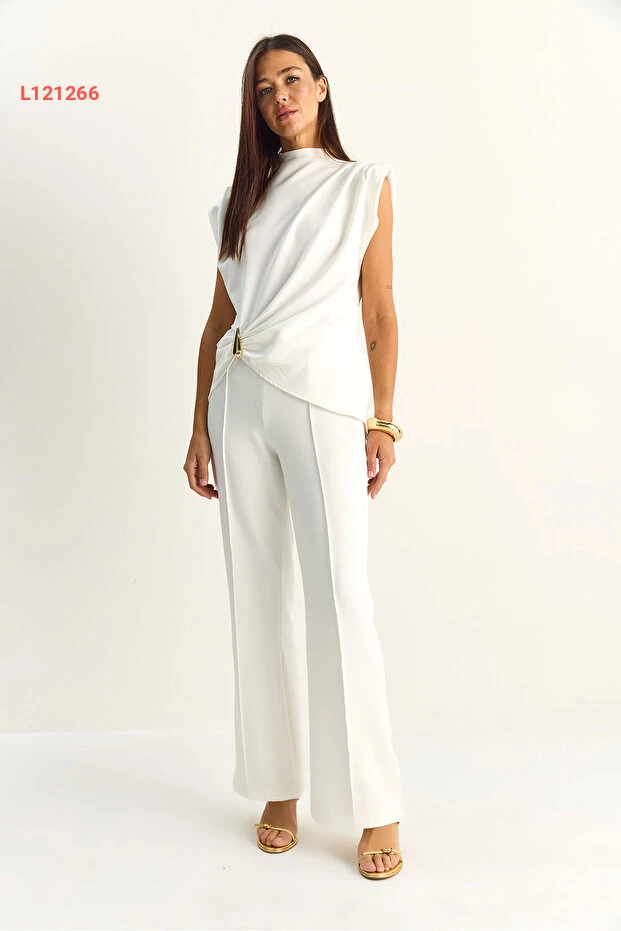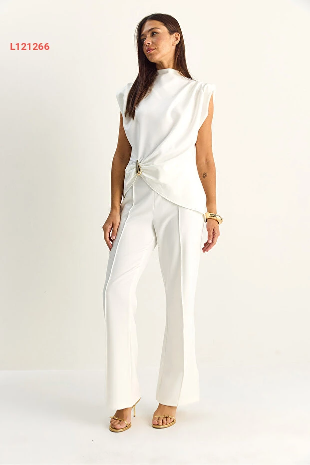 تألقي بأناقتك مع طقم بلوزة بيضاء مزودة بتفاصيل أكسسوار وبناطيل عالية الخصر مع تضليعات، الذي يجمع بين الراحة والتميز. تصميمه العصري يضمن لك إطلالة فريدة تناسب مختلف المناسبات، بينما تضفي اللمسات الفاخرة لمسة من الأناقة على مظهرك. اختاري هذا الطقم ليكون خيارك المثالي في كل فصول السنة!