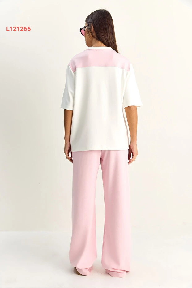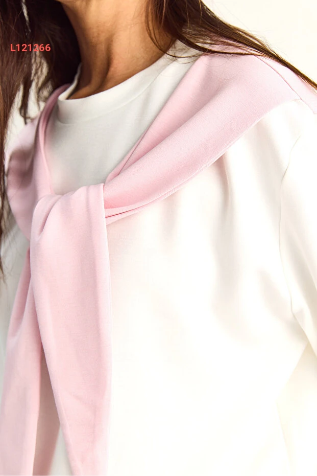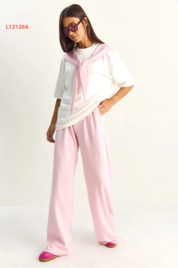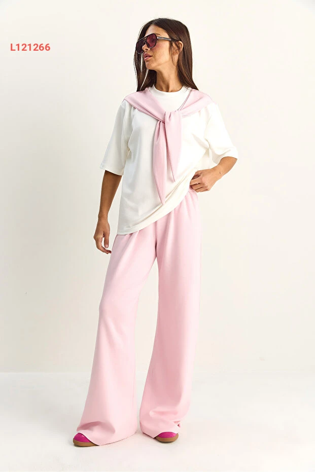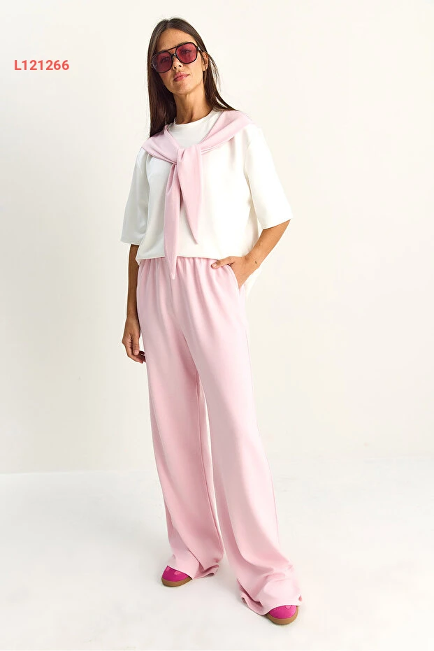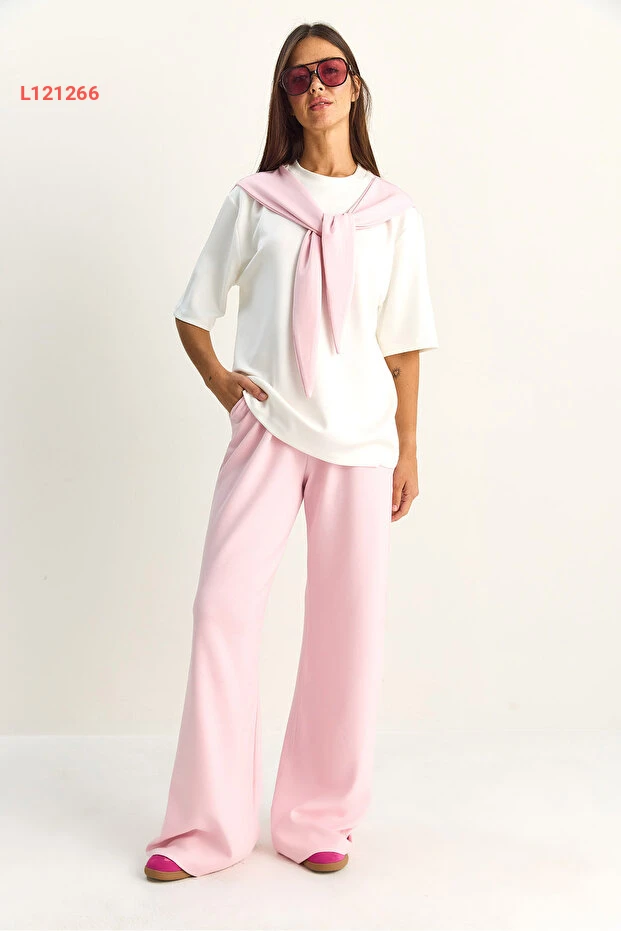 طقم مودال أنثوي مكون من تيشيرت أساسي بشال وسروال واسع بخصر مرن من بيانكو لوتشي