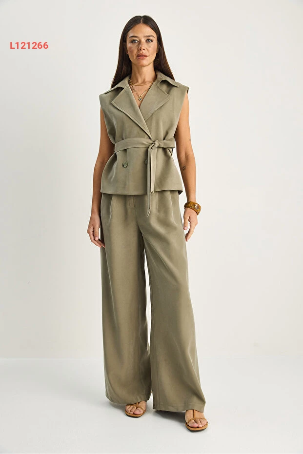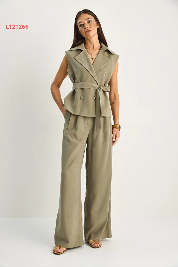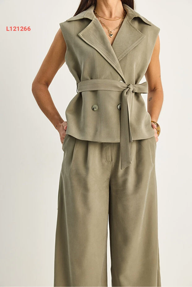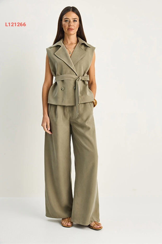 استمتعي بأناقة لا مثيل لها مع مجموعة "Bianco Lucci" الكلاسيكية! يتميز هذا الطقم بتصميمه العصري الذي يضمن لكِ مظهرًا أنيقًا بفضل الياقة المتقاطعة والسروال العالي الخصر، ما يمنحك راحة كاملة وأناقة استثنائية. استعدي لاستقبال الإطلالات المبهرة في كل مناسبة!