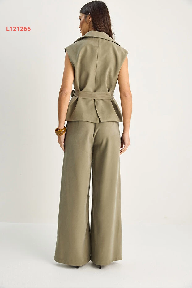 طقم مودال كلاسيكي من بنطال بالازو عالي الخصر وسترة برباط من بيانكو لوتشي