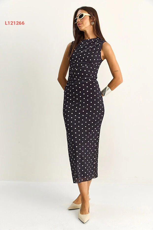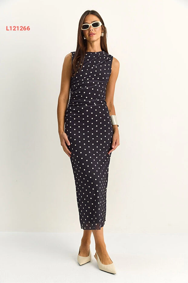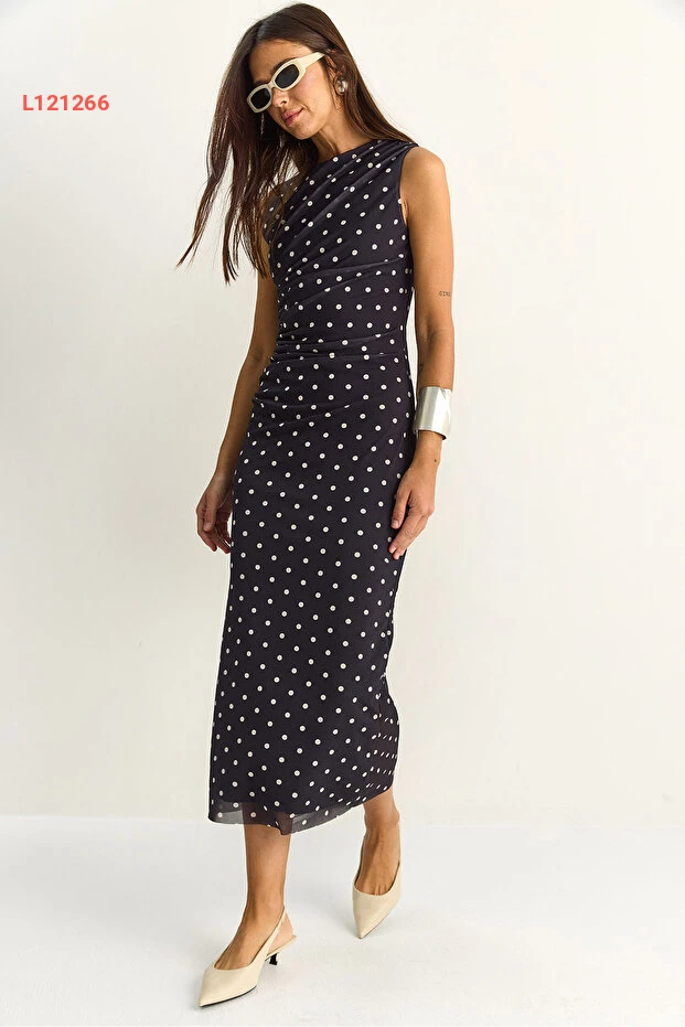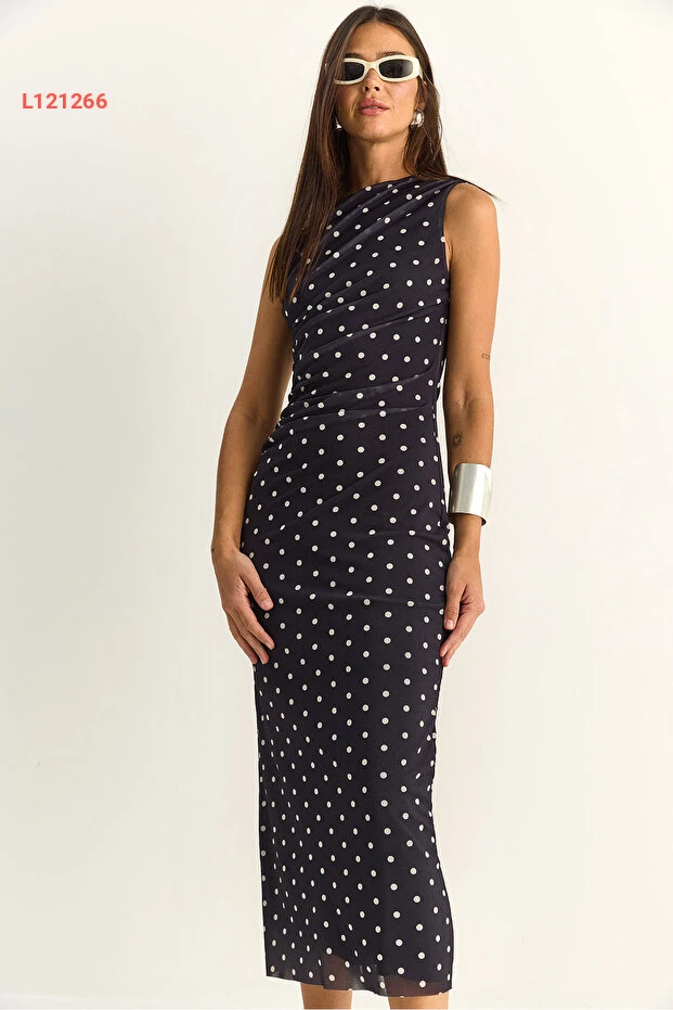 اختاري الأناقة مع فستان Bianco Lucci المذهل! يتميز بتصميمه الدرامي والمزخرف بالنقاط، مع تفاصيل درابية تضيف لمسة فريدة وجذابة. مصنوع من خامات عالية الجودة مع بطانة مريحة، مما يجعله الخيار المثالي للمناسبات الخاصة أو الخروجات اليومية.