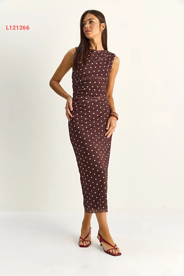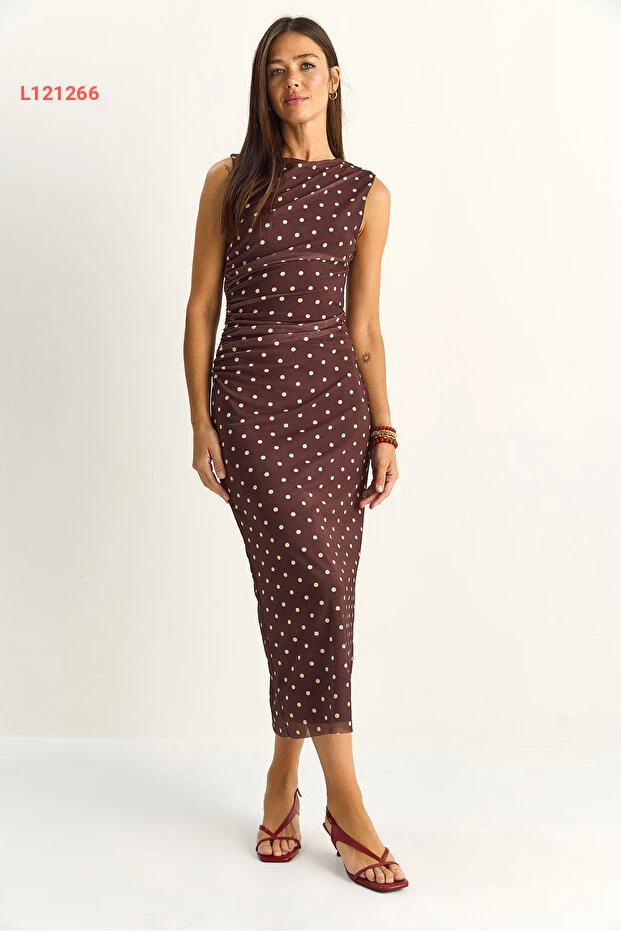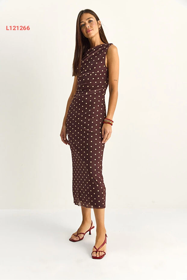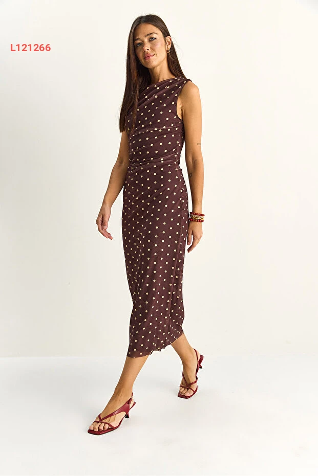 تألقي بإطلالة أنيقة مع فستان Bianco Lucci دريبيلي النقاط، الذي يجمع بين الأناقة والراحة. يتميز بقصته المتوسطة المدعومة بطبقة داخلية ناعمة، مما يضمن لكِ الراحة طوال اليوم. بفضل تصميمه الفريد والحديث، سيكون الخيار الأمثل لمناسباتك الخاصة أو للتنزه مع الأصدقاء.