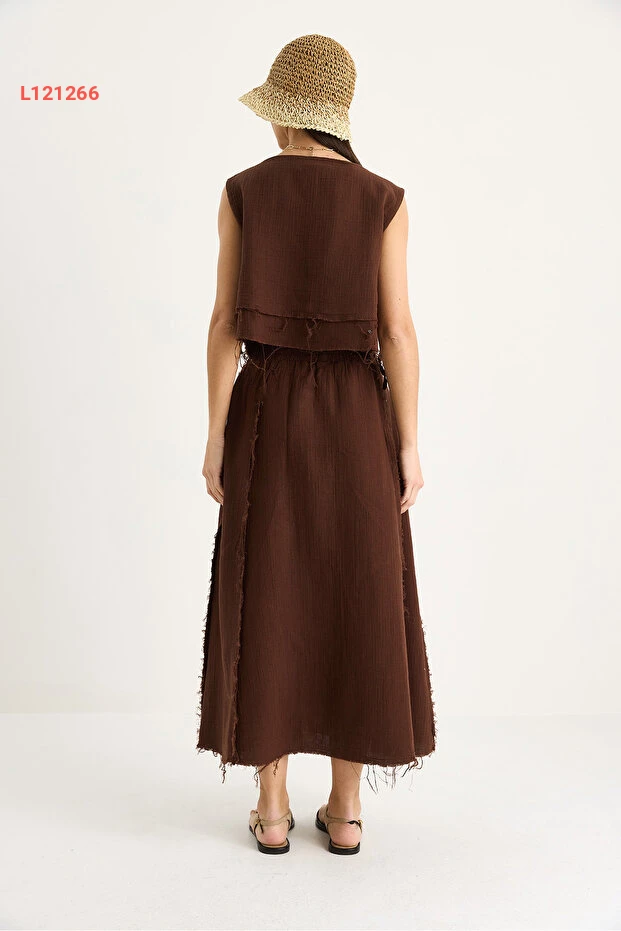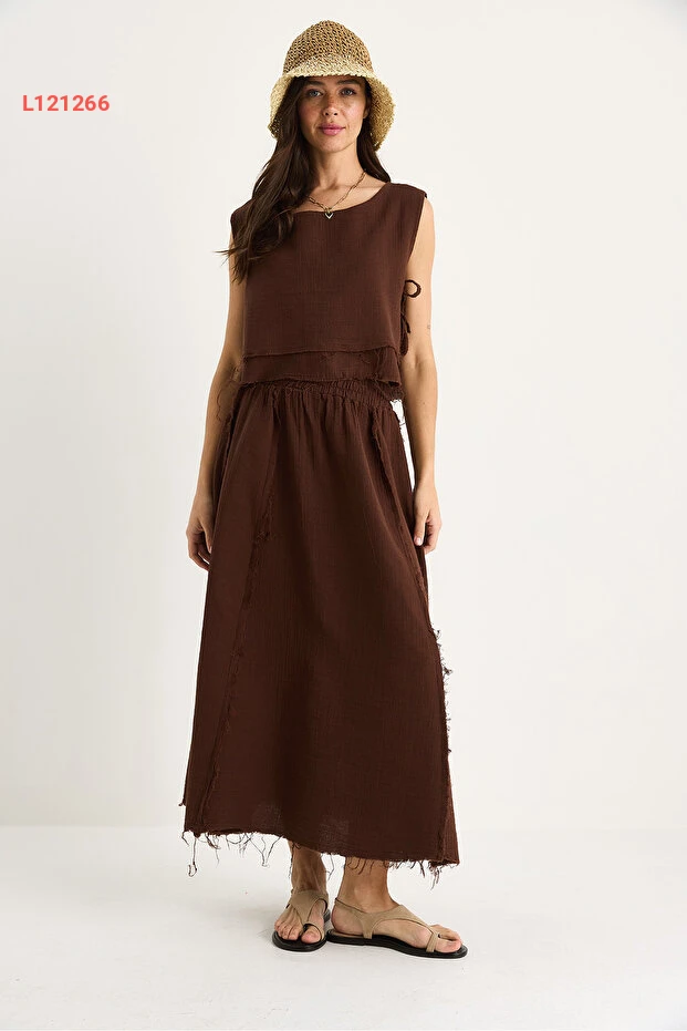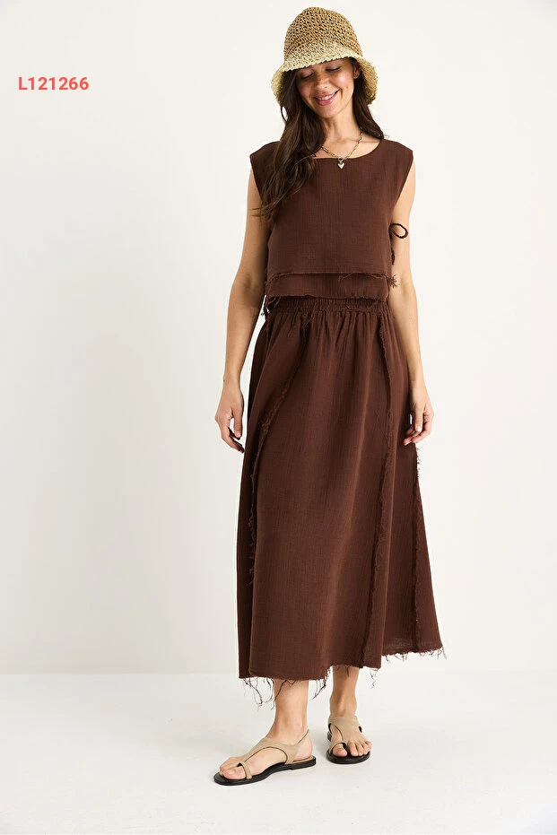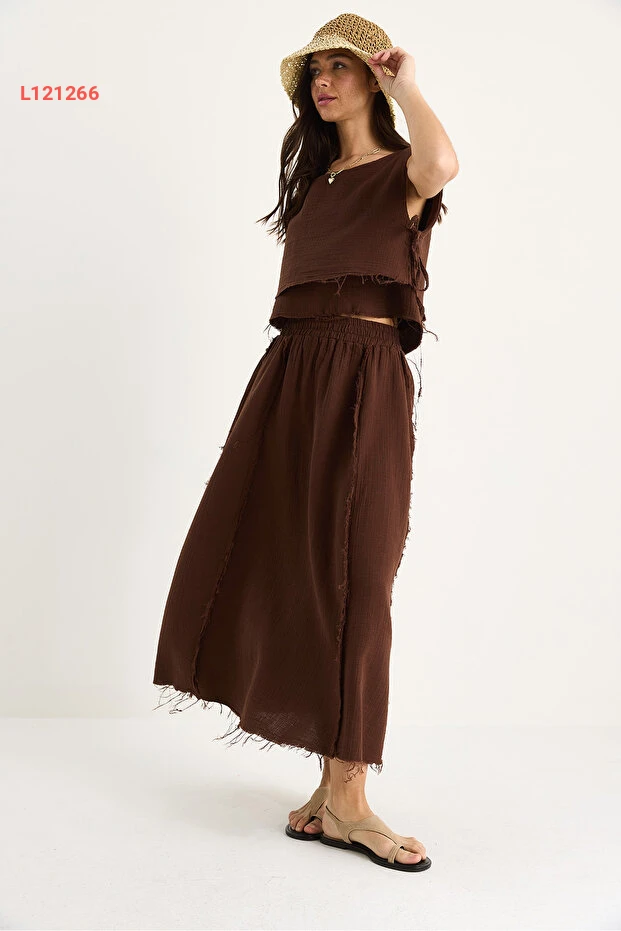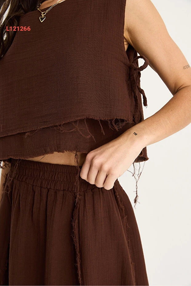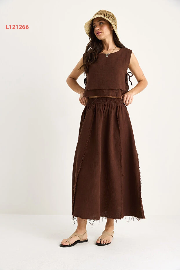طقم شيفون مبتكر للنساء مع تنورة برباط جانبي وحزام مرن