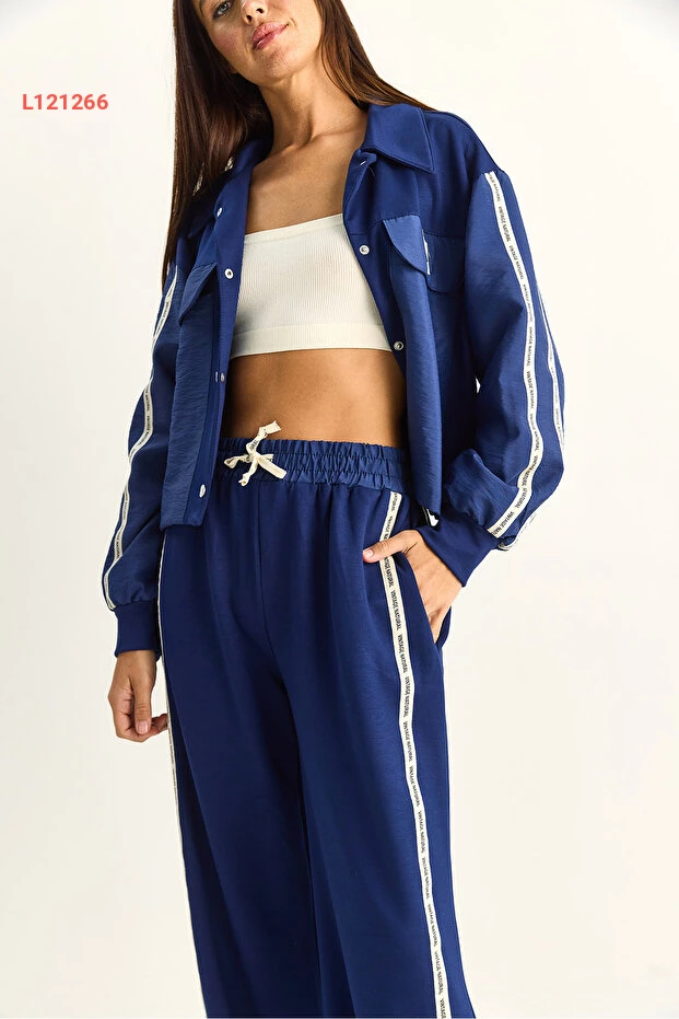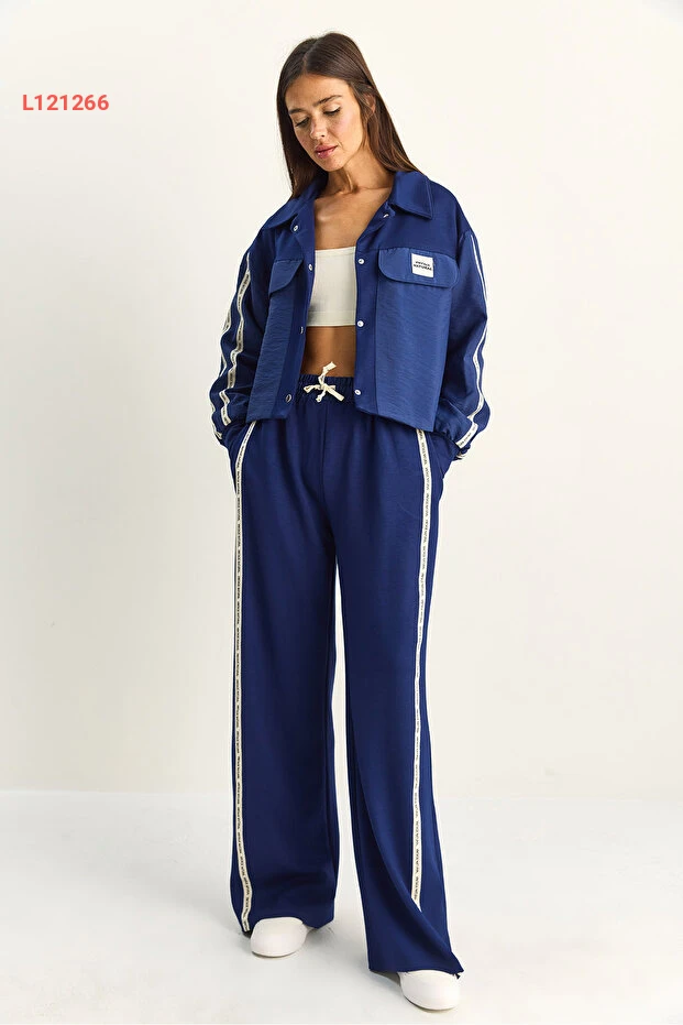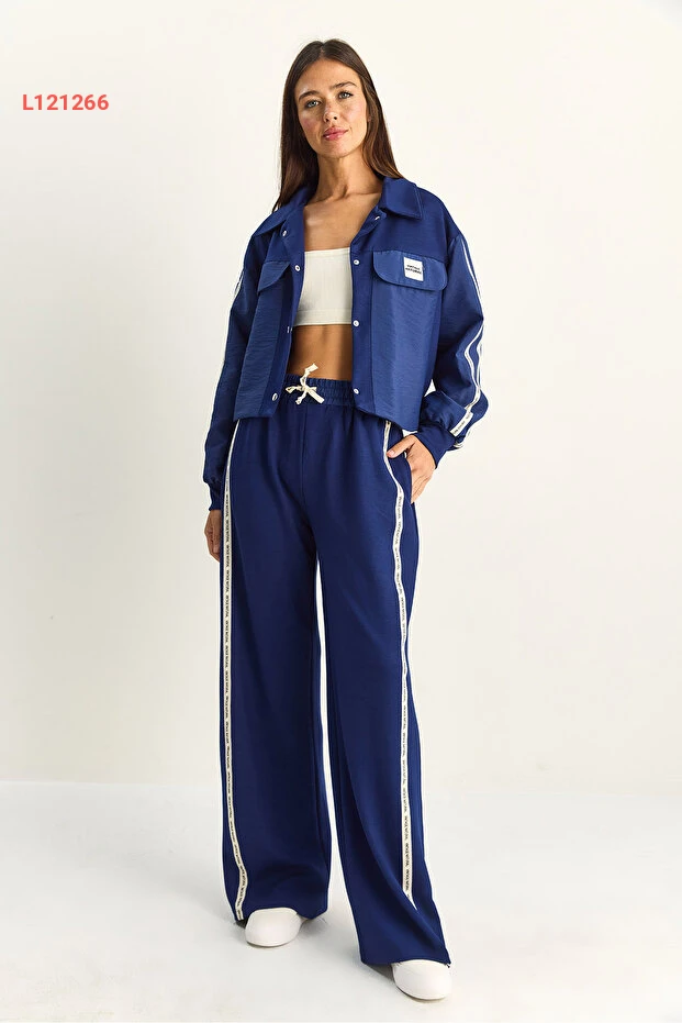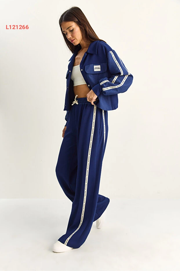تألقي بإطلالة مميزة مع مجموعة Bianco Lucci التي تضم جاكيت بتفاصيل شريطية وبطباعة متباينة، مع بنطال واسع الأرجل يمنحكِ الراحة والأناقة في آن واحد. مصممة من خامات عالية الجودة، تضمن لكِ هذه المجموعة الأناقة المثالية والراحة طوال اليوم، مما يجعلها خياراً مثالياً لكل المناسبات.