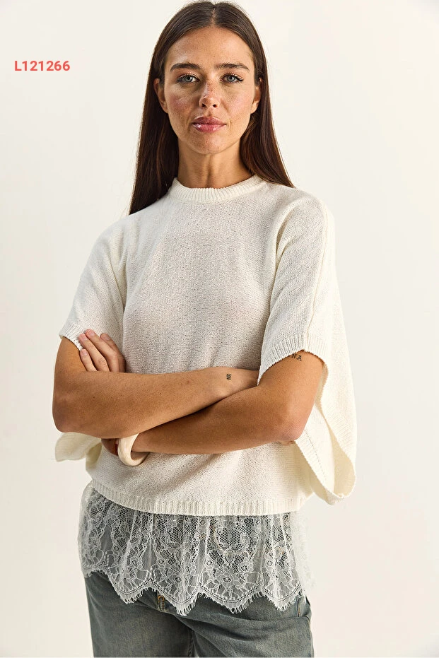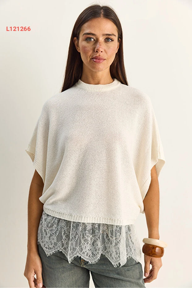 استمتعي بأناقتك مع بلوزة Bianco Lucci المميزة بتفاصيل الدانتيل الأنيقة! تصميمها نصف الفتاة مع ياقة نصف عالية وأكمام واسعة يضمن لكِ راحة استثنائية وأناقة عصرية. مصنوعة من خامة ناعمة ومرنة، هذه البلوزة هي الخيار المثالي لإطلالة مريحة تناسب جميع المناسبات.