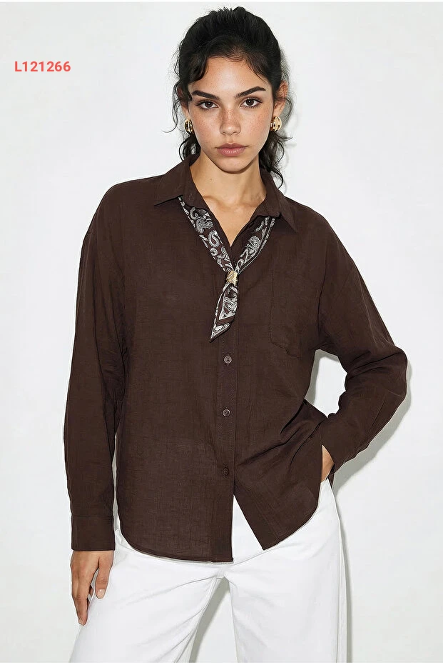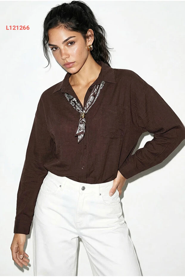 قميص كرينكل فضفاض مع وشاح وإكسسوار جيب واحد من بيانكو لوتشي النساء