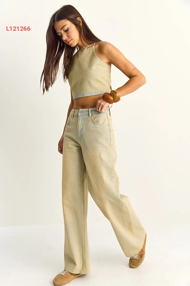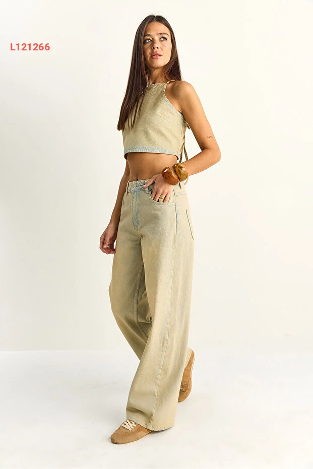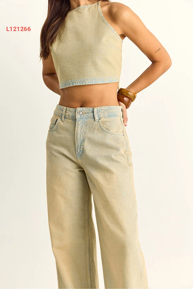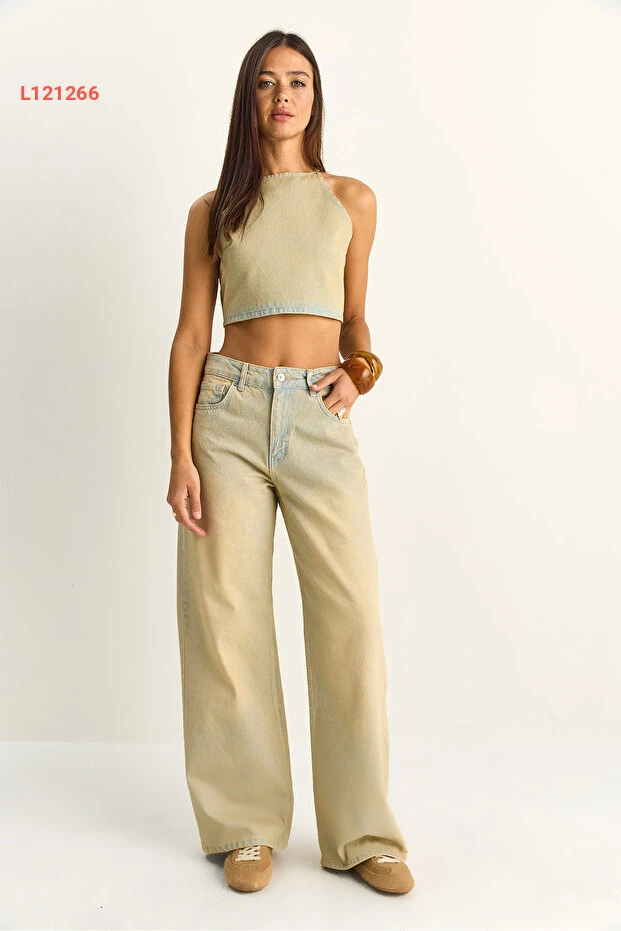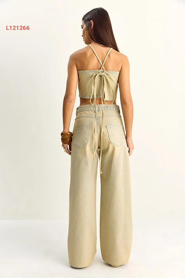 طقم جينز كروب توب وسروال عريض من بيانكو لوتشي للسيدات