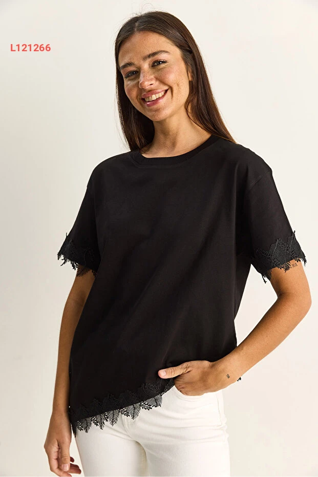 اجعل إطلالتك أنيقة ومريحة مع تيشيرت Bianco Lucci الأوفر سايز ذو الرقبة المدورة والتفاصيل الدانتيل الرائعة. يتميز بقصة غير متساوية تضفي لمسة عصرية وفريدة، بينما توفر الأقمشة الناعمة الراحة طوال اليوم. مثالي للتنسيق مع سراويل جينز أو تنانير لإطلالة مميزة تناسب مختلف المناسبات.