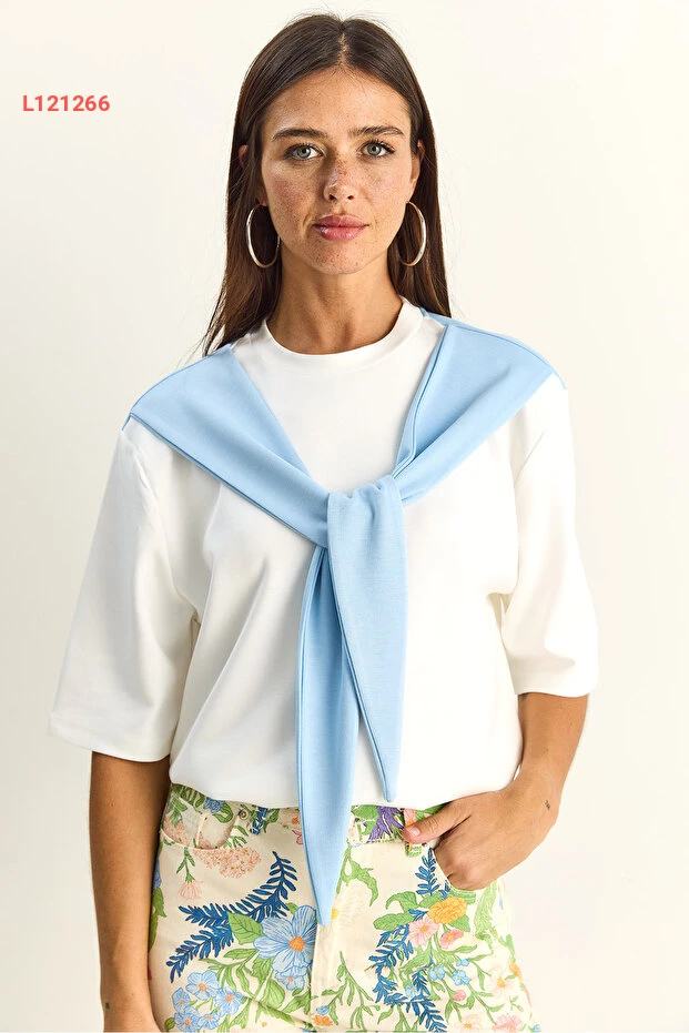 تي شيرت أساسي بحجم كبير مع شال مميز من بيانكو لوتشي 1094 60286118