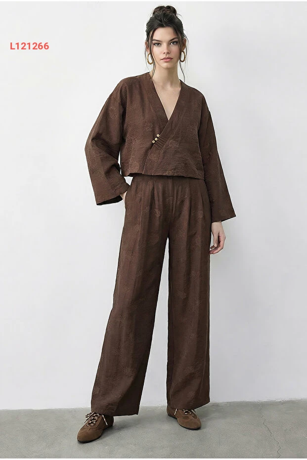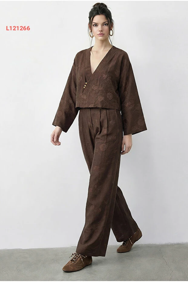 استمتعي بأناقتك مع طقم Bianco Lucci المكون من كيمونو مزخرف بالأزهار وسروال واسع، حيث يجمع بين الراحة والعصرية في إطلالة واحدة. يضمن لك الأقمشة الناعمة الخفة والتهوية، مما يجعله الخيار المثالي لكل المناسبات. ارتديه في نزهة أو اجتماع، وستكونين دائماً محط الأنظار!