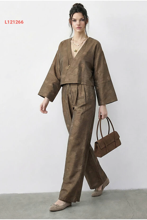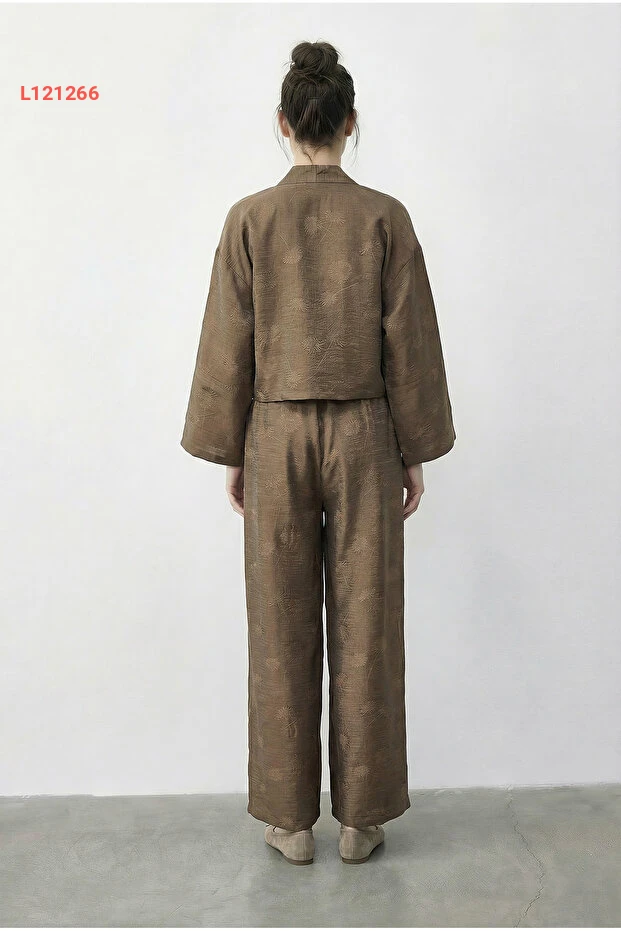 احصلي على إطلالة أنيقة ومريحة مع طقم Bianco Lucci، الذي يجمع بين الكيمونو المزخرف بزهور جميلة والسروال الواسع المناسب. يتميز القماش الناعم بجودة عالية، مما يمنحك حرية الحركة طوال اليوم، سواء في الشارع أو في المنزل. أضفي لمسة من الأناقة العصرية إلى خزانة ملابسك مع هذا الطقم الفريد!