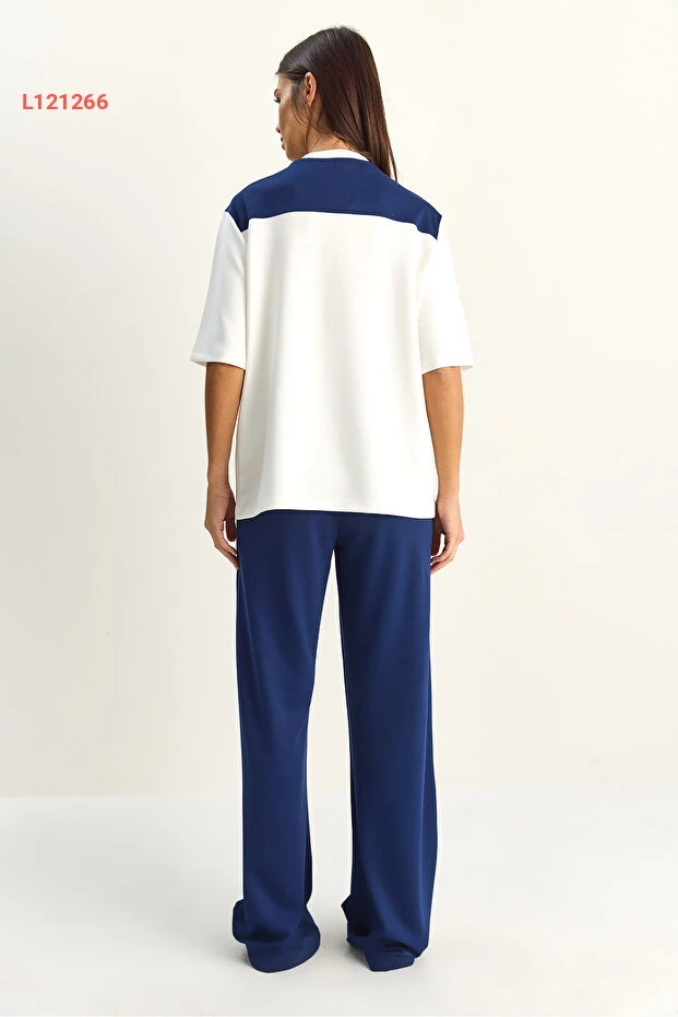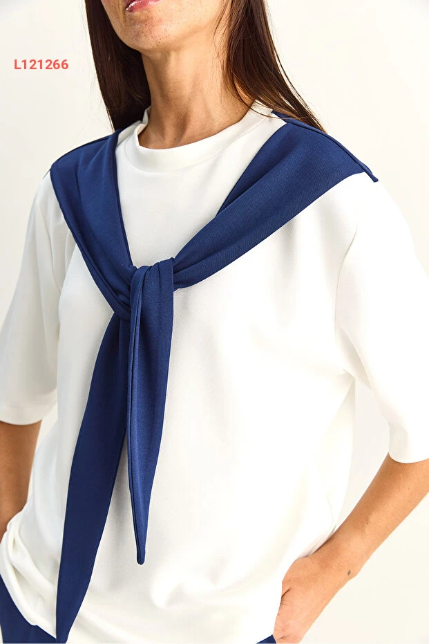 طقم مريح من قميص تي شيرت بتفاصيل شال وسروال واسع بخصر مطاطي من بيانكو لوتشي