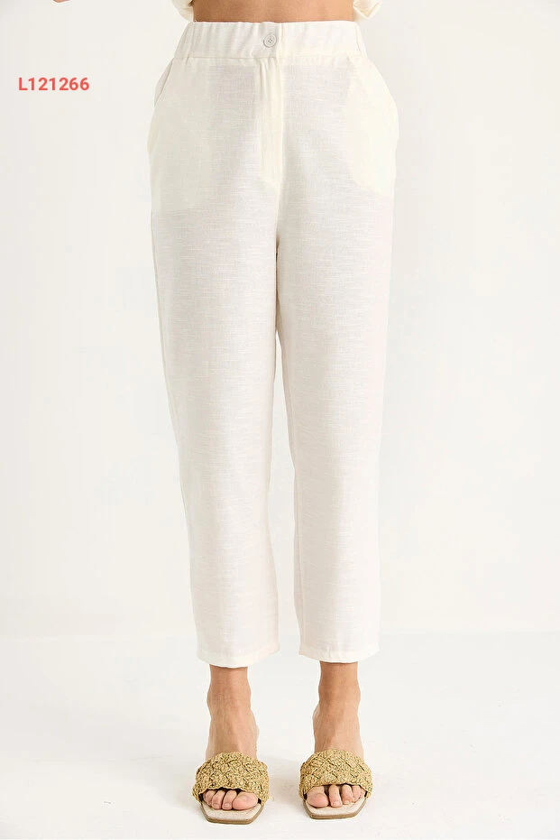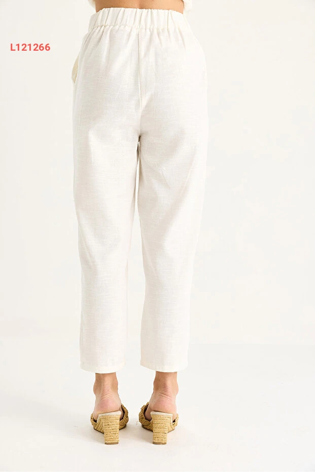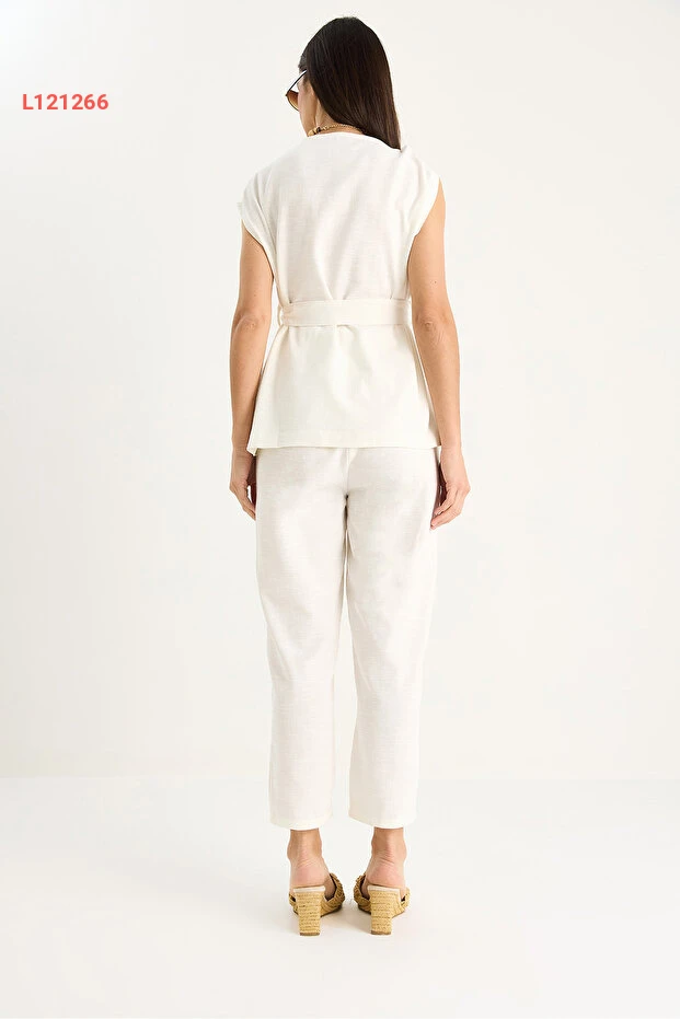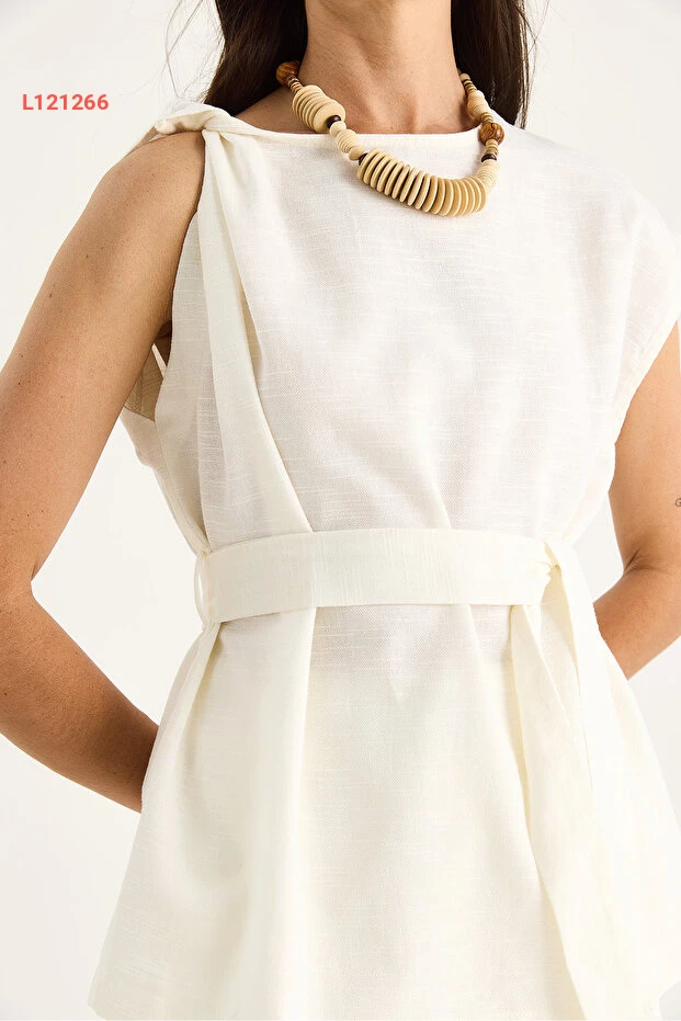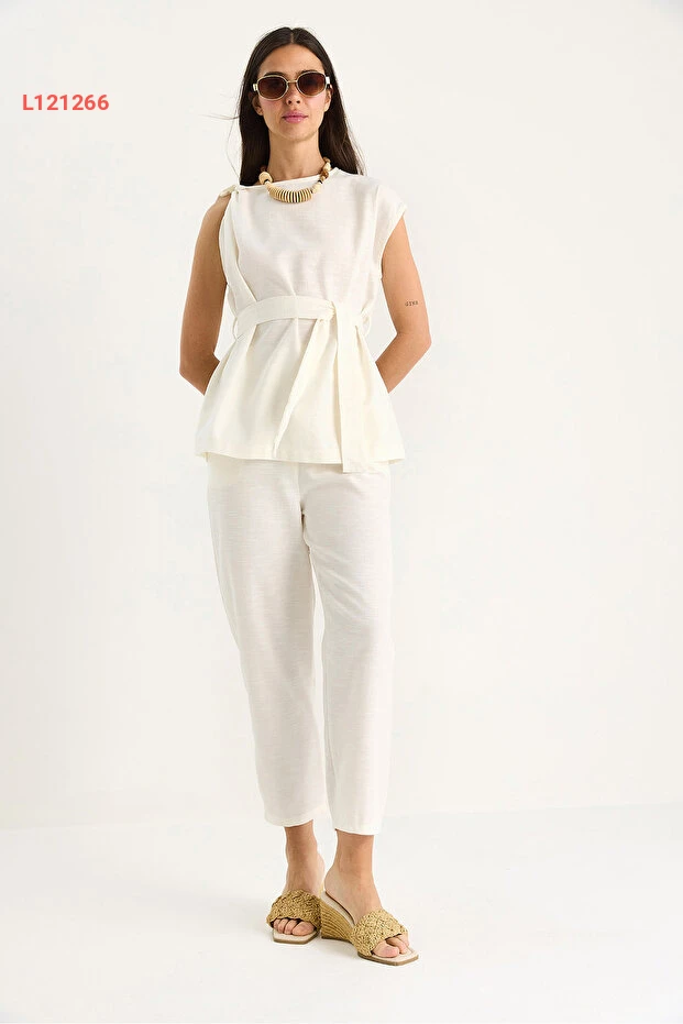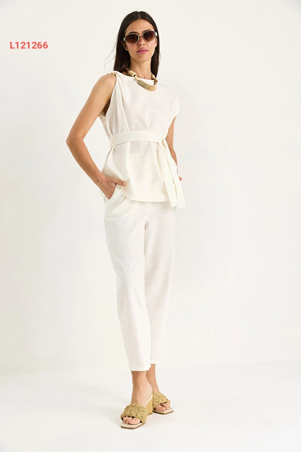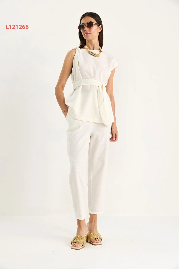 طقم كتان نسائي من بيانكو لوتشي بتفاصيل عقدة على الكتف 9369