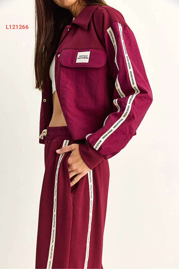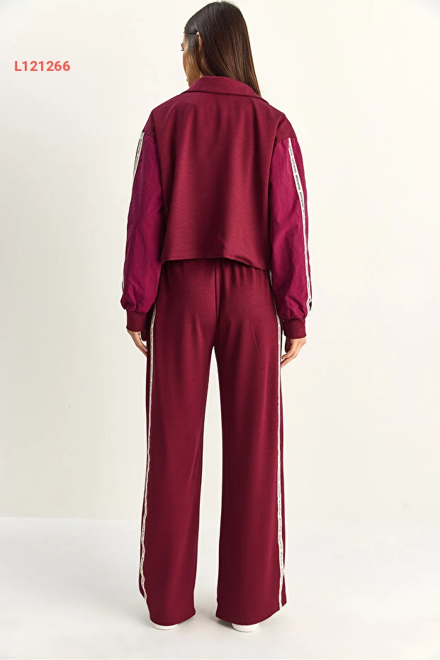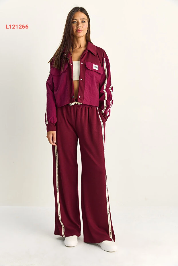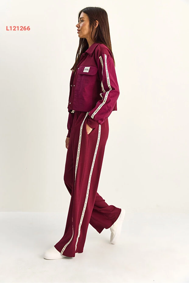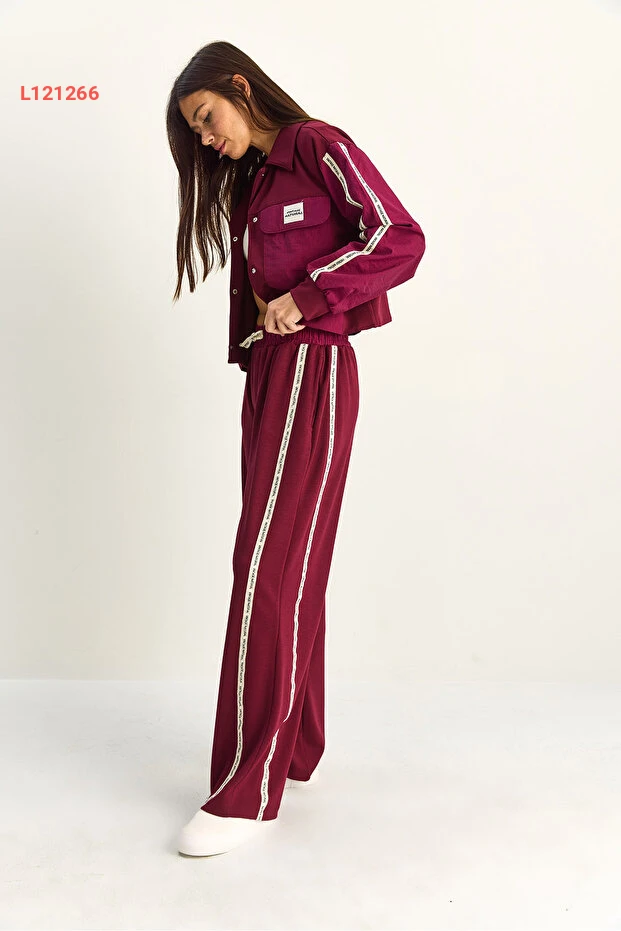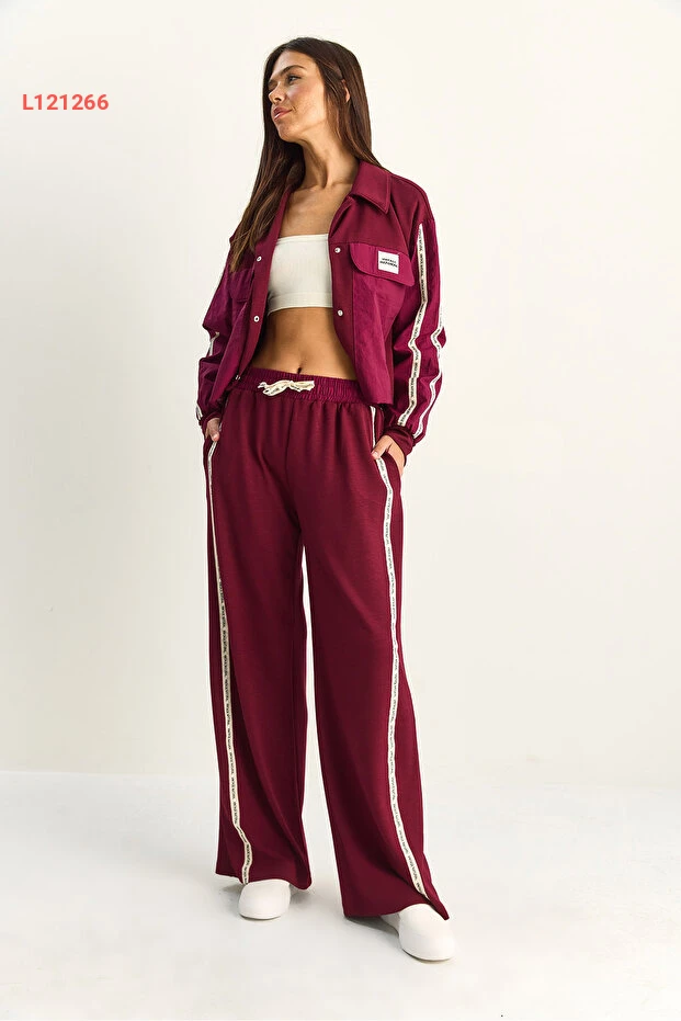 استمتع بالأناقة العصرية مع طقم Bianco Lucci المكون من جاكيت بتفاصيل شريطية وسروال واسع الساق. يتميز القماش ذو القوام المتباين بإضفاء لمسة مميزة على إطلالتك، بينما يوفر التصميم الراقي راحة تنقلك من المناسبات اليومية إلى السهرات الفاخرة بكل سهولة. ارتدي هذا الطقم لتتألقي بإطلالة تجمع بين الأنوثة والراحة بأسلوب عصري لا يقاوم.