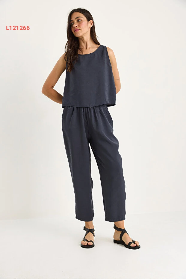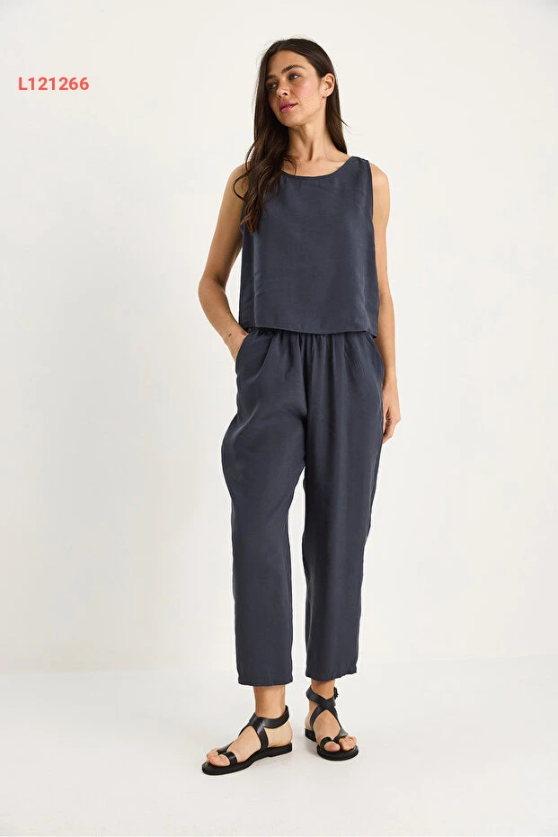 مجموعة بلوزة بسحاب عريضة برباط عند الخصر وسروال بإستك من بيانكو لوتشي