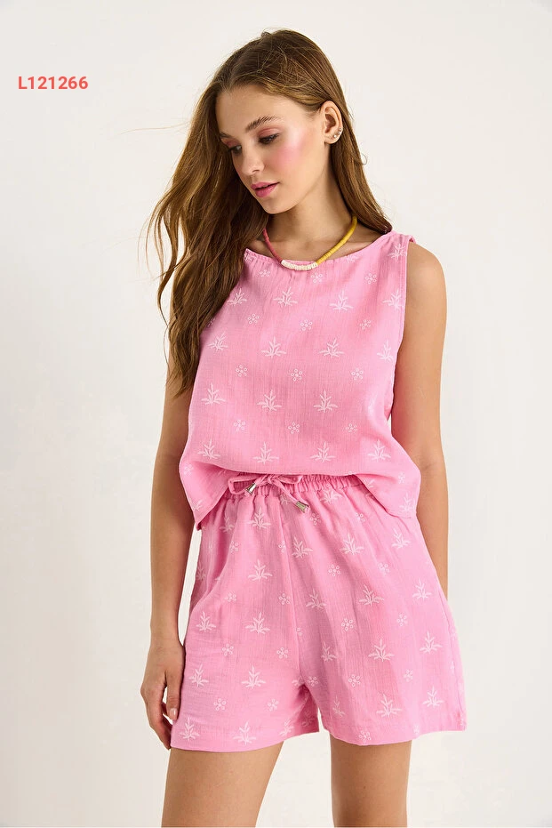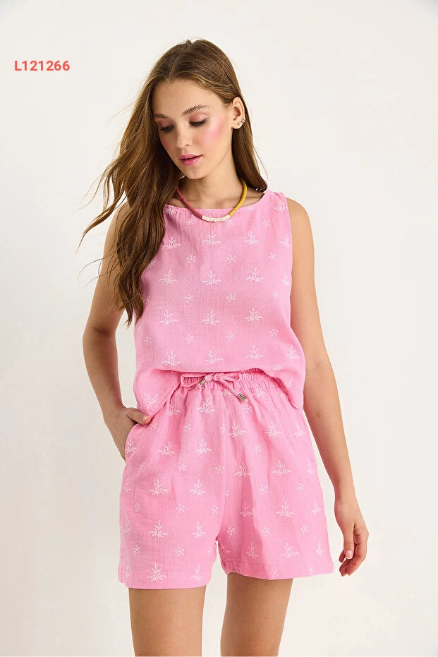 استمتعي بأناقة الصيف مع طقم Bianco Lucci النسائي، الذي يتضمن بلوزة بسواعد سميكة وسروال قصير مزود بخصر مطاطي وأزرار جيب مميزة. يتميز القماش الناعم المصنوع من الملسين بنقوش زهور رائعة تمنحك إطلالة عصرية ومريحة طوال اليوم. سواء كنت تتجهين إلى الشاطئ أو نزهة في المدينة، سيكون هذا الطقم رفيقك المثالي.