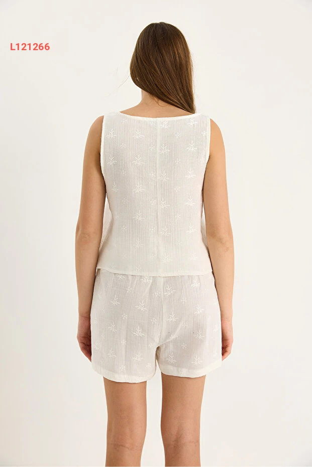 استمتع بالأناقة والراحة مع مجموعة Bianco Lucci، التي تضم بلوزة سميكة بحمالات عريضة وشورت بخصر مطاطي وجيوب عملية. تتميز المجموعة بتطريز الأزهار الناعم على القماش الفاخر المصنوع من المسلين، مما يضفي لمسة أنثوية رائعة. مثالية لكل المناسبات، ستجعلك هذه المجموعة تتألقين بإطلالة عصرية ومريحة في آنٍ واحد.