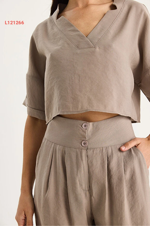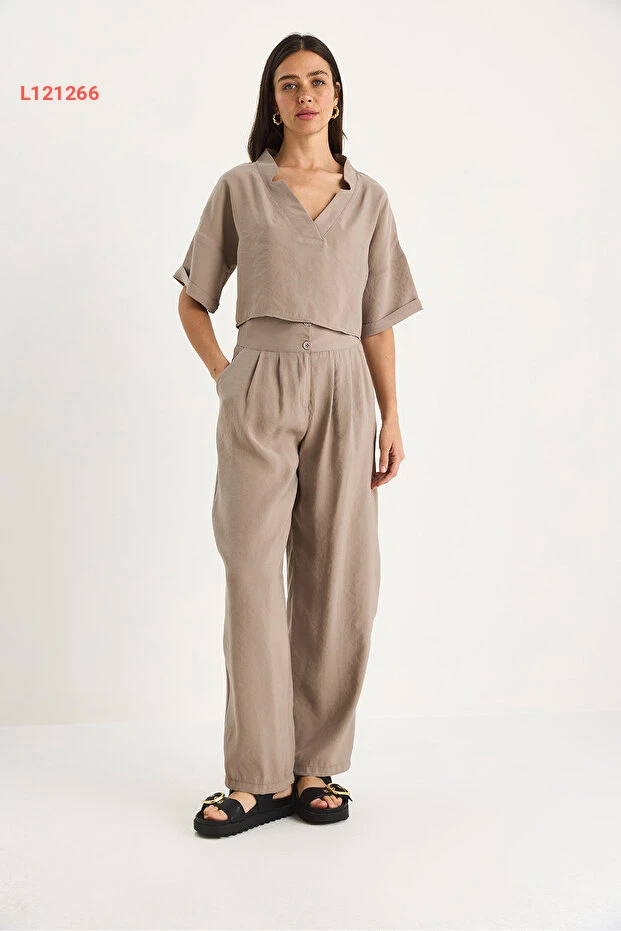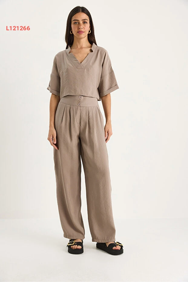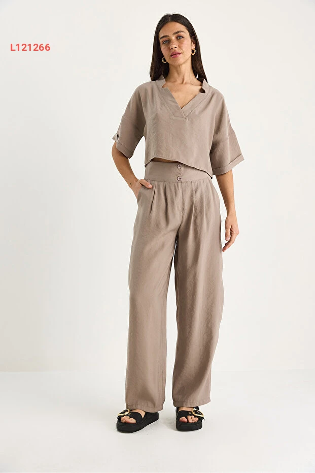طقم مودال نسائي مكون من بلوزة بياقة على شكل V وسروال عالي الخصر من بيانكو لوتشي