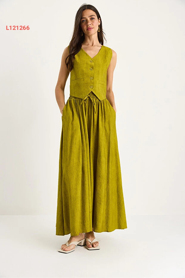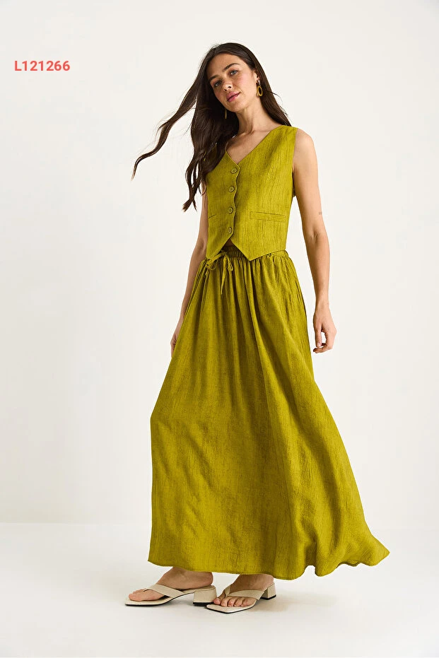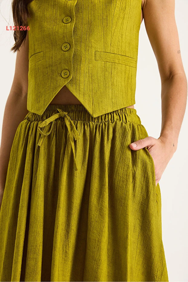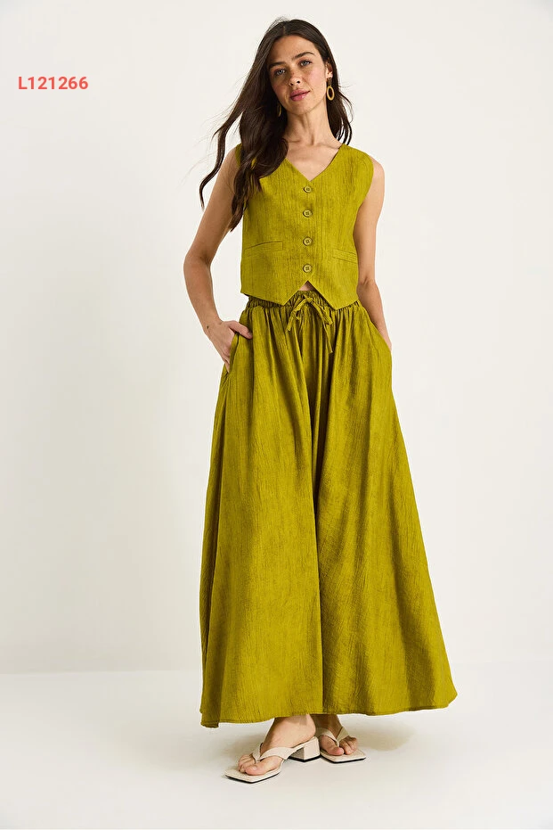استمتعي بأناقتك مع طقم Bianco Lucci الرائع، الذي يجمع بين الجمال والراحة. يأتي هذا الطقم بتصميم يلبس الأناقة مع سترة مزودة بالياقة وأكمام مريحة، بالإضافة إلى تنورة كلوش بجيب أنيق، مما يمنحك إطلالة متكاملة مثالية لجميع المناسبات. تم تصميمه باستخدام خامات عالية الجودة تضمن لك الراحة والثقة طوال اليوم.