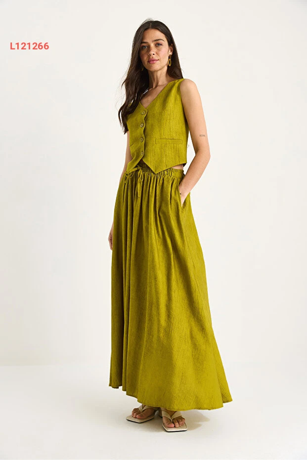 طقم نسائي من بيانو لوتشي مع سترة وجيوب وتفاصيل تنورة واسعة رقم 9294