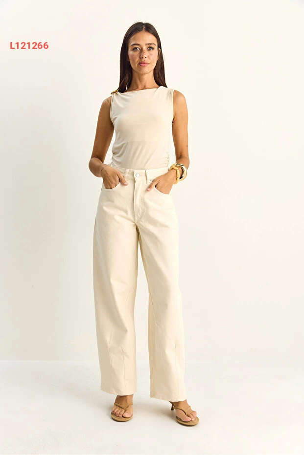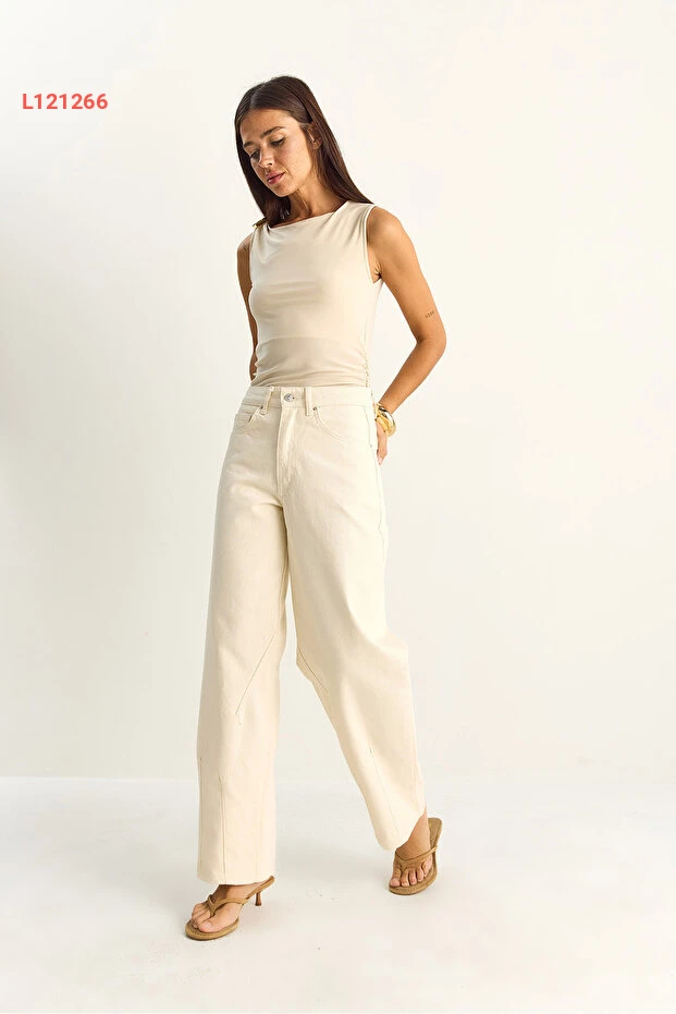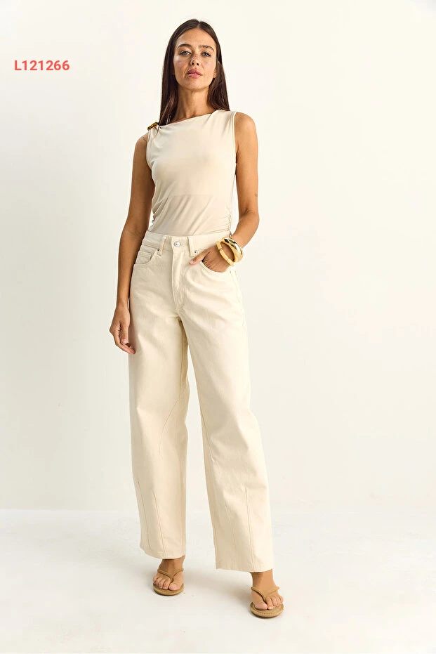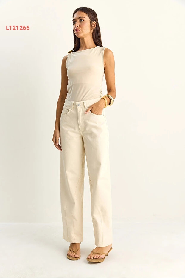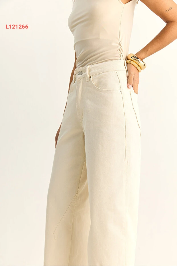 جينز نسائي بقصة باجّي عتيقة ببرقعة بيضاء من بيانكو لوتشي
