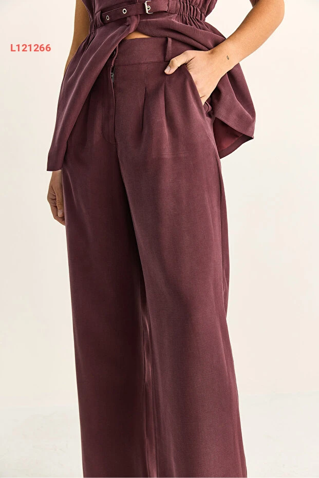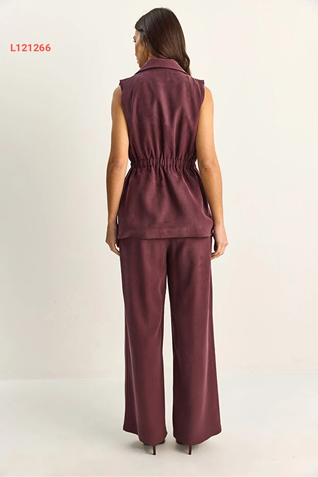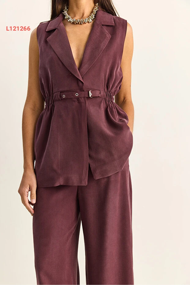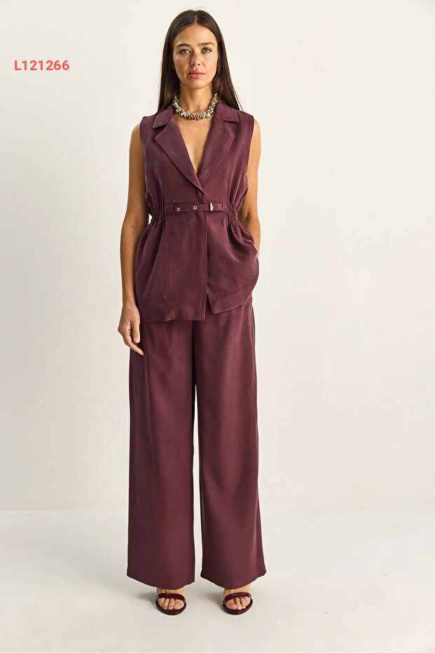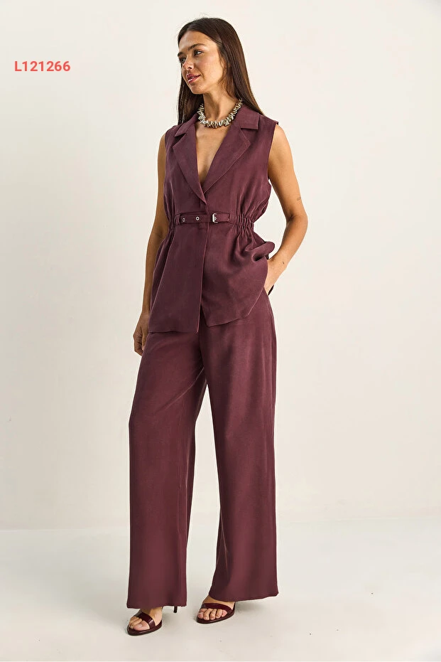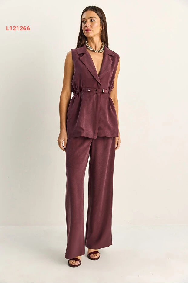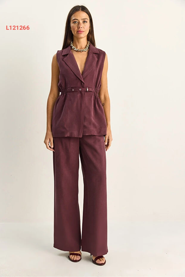 طقم مكون من سترة نسائية متناسقة بحزام وقصة فضفاضة مع بنطلون مزدوج الطيات من بياكو لوتشي