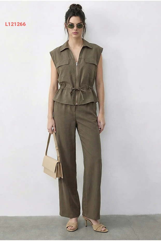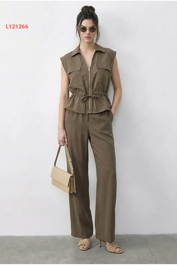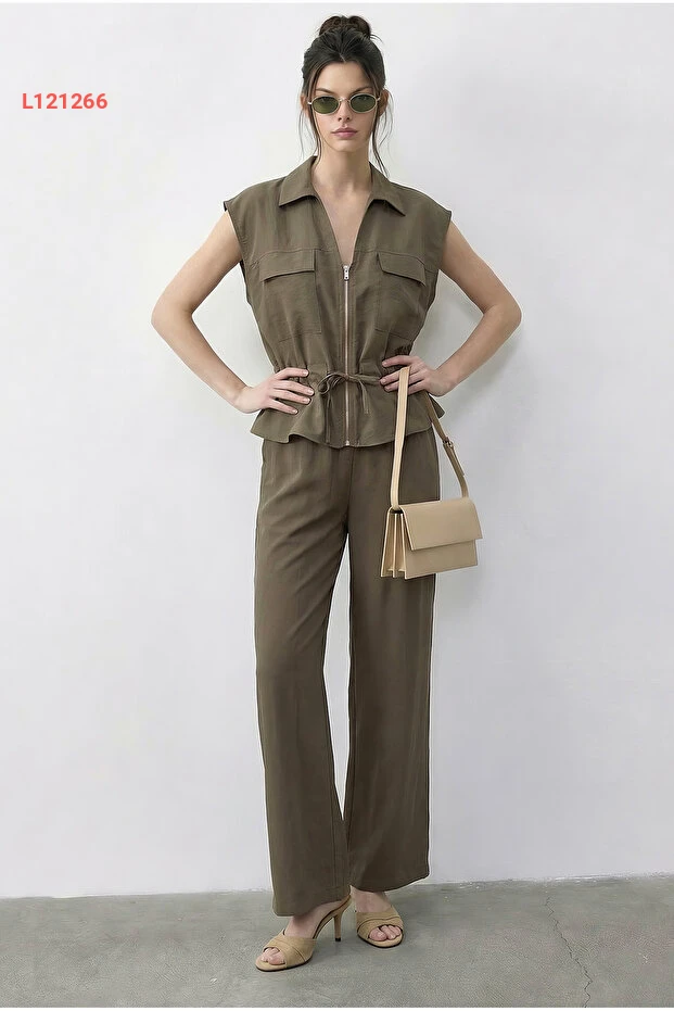 استمتعي بأناقة لا مثيل لها مع طقم Bianco Lucci المصنوع من القماش الفاخر، الذي يجمع بين الياقة القابلة للتعديل والبنطلون ذي الخصر المرن. يتميز بتصميمه العملي مع جيبين مزدوجين، ما يجعله الخيار المثالي لكل يوم، سواء في العمل أو خلال إجازتك. امنحي إطلالتك لمسة من الراحة والأناقة مع هذا الطقم الرائع!