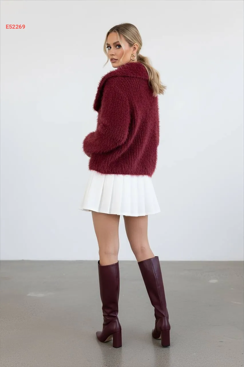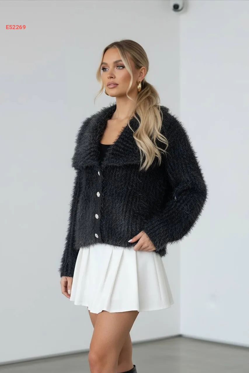 جاكيت تريكو قصير بياقة فرو