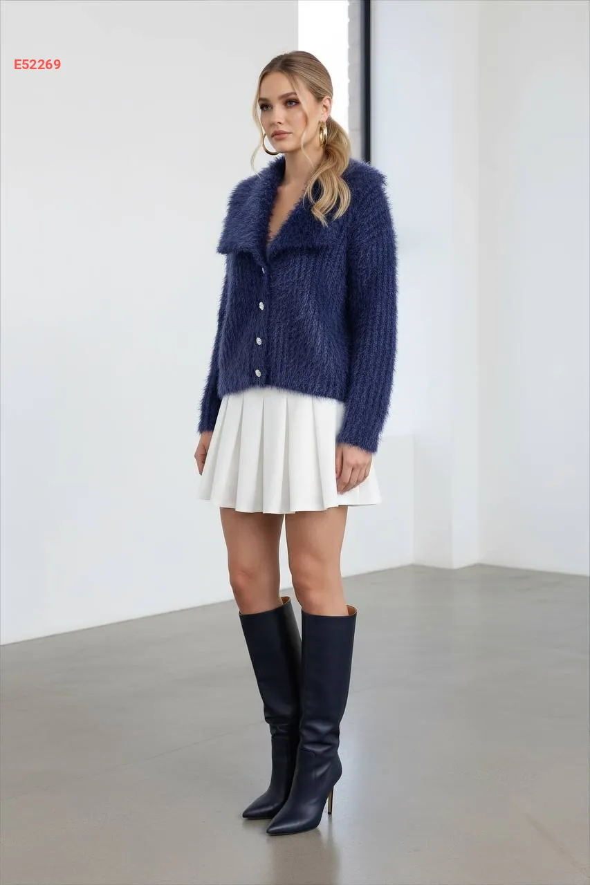 جاكيت تريكو بياقة واسعة