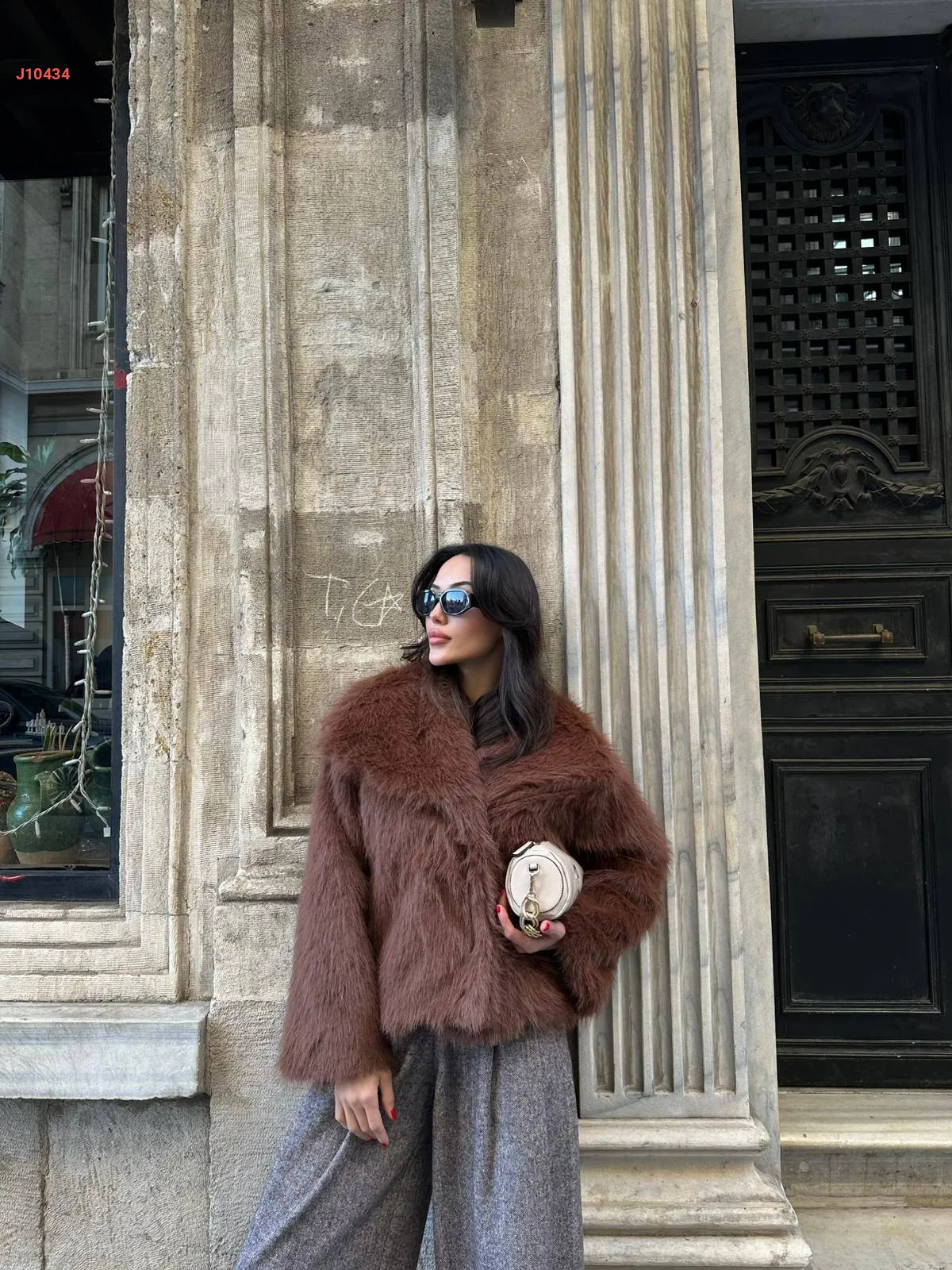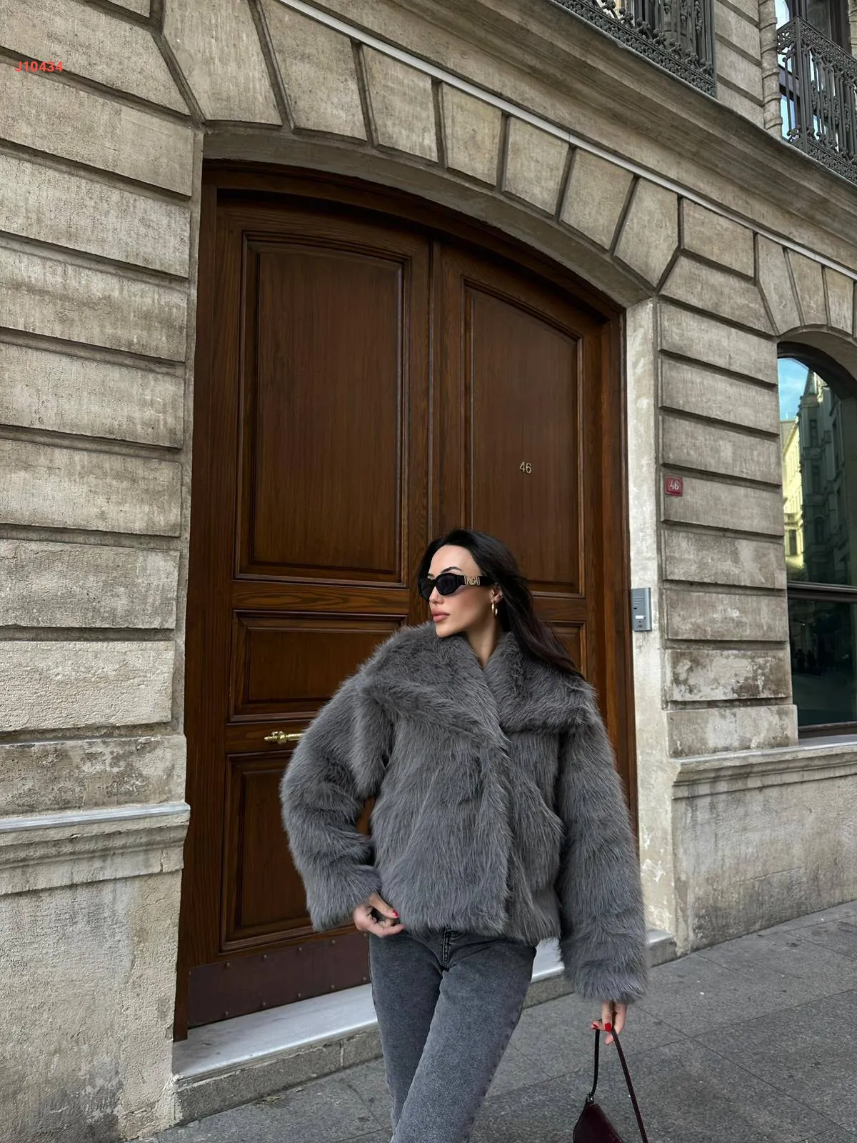 جاكيت فرو بياقة واسعة