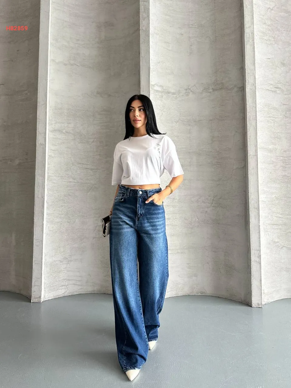 High Waist Wide Leg Jean| Light Blue, Tint Blue, Mide BlueProduct Code: W-1505Size:34(1) 36(2) 38(2) 40(1) 42(1)(7 pcs in serie)Fabric: %100 Cotton
