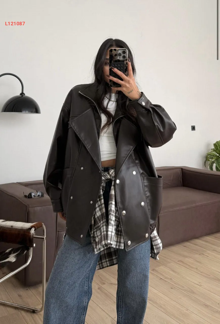 جاكيت جلد واسع