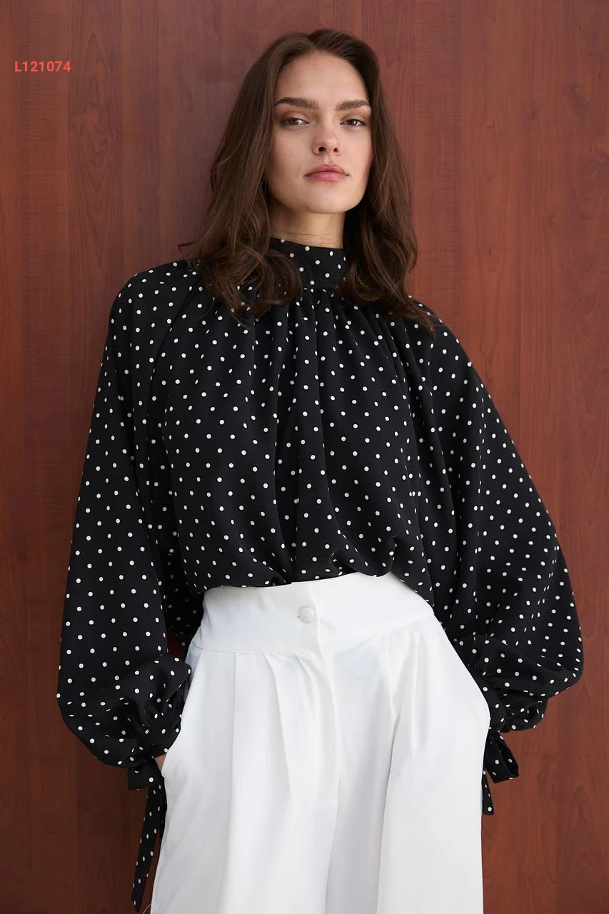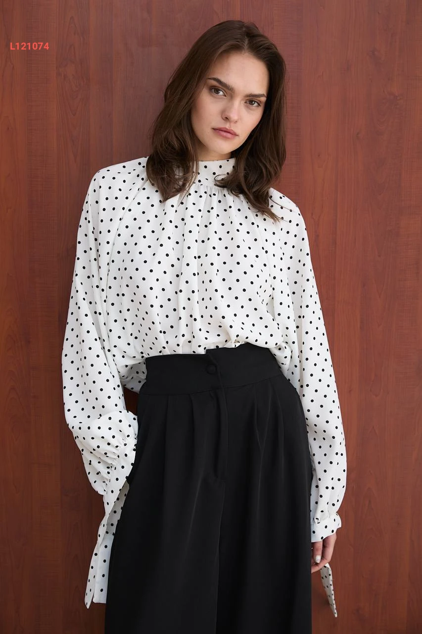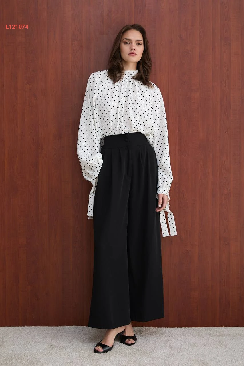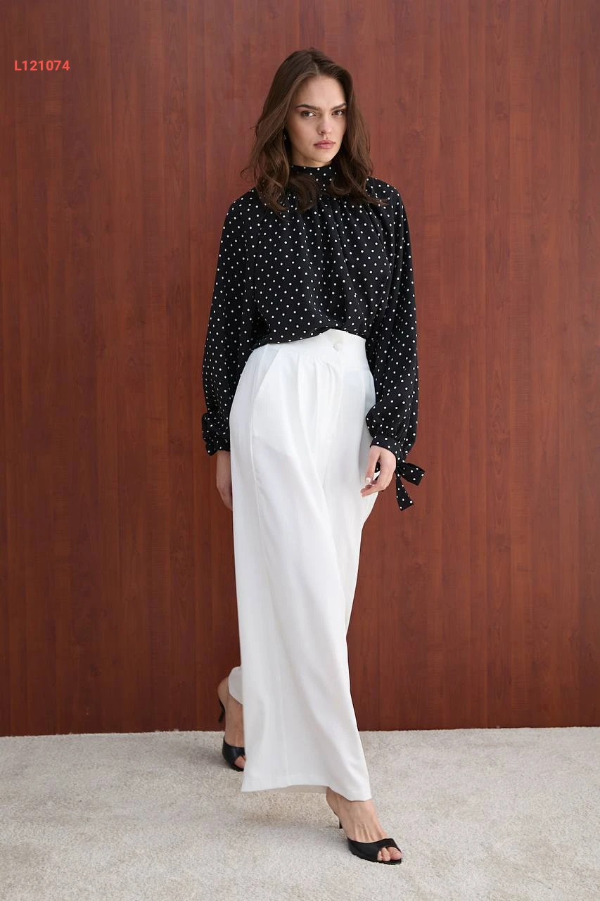 طقم بنطال واسع وبلوزة منقطة
