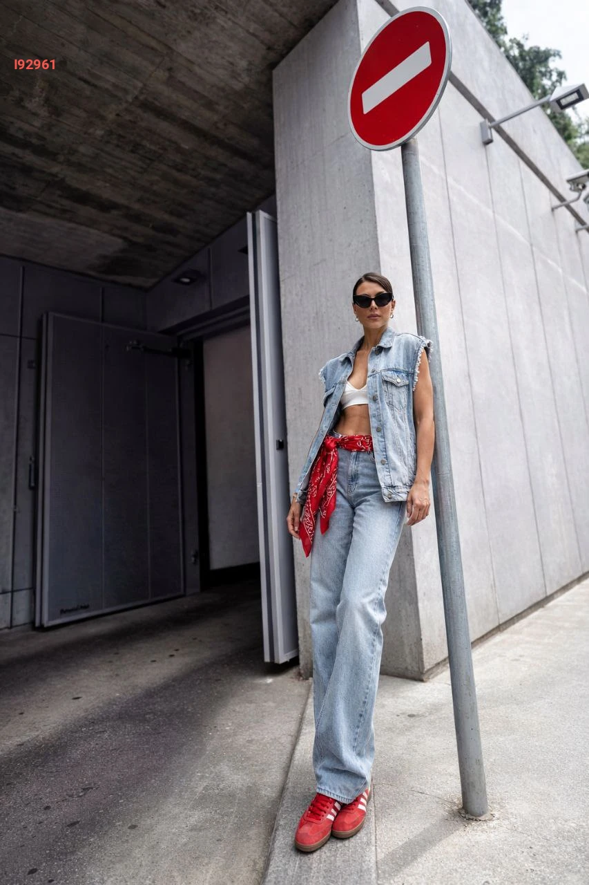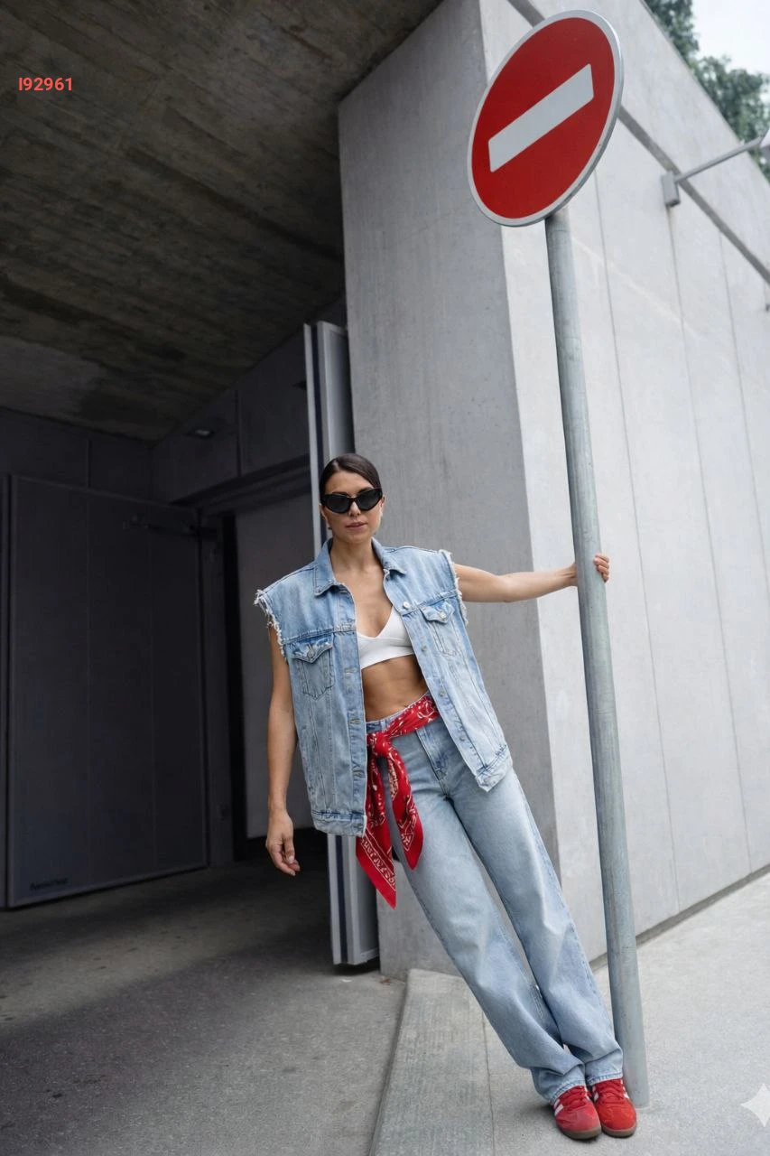 جاكيت جينز حفر بأزرار موديل واسع