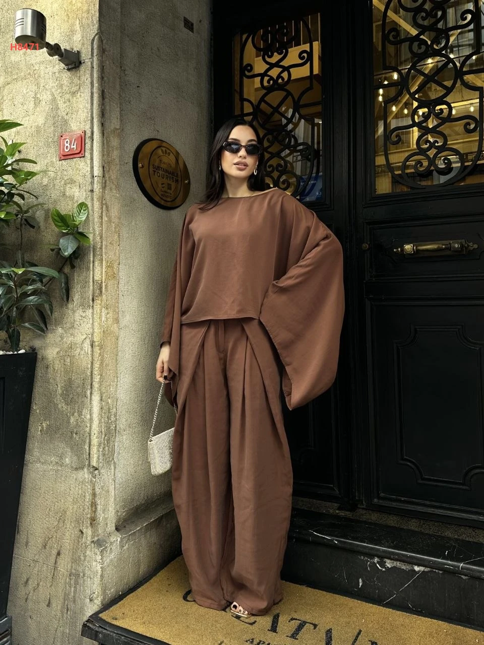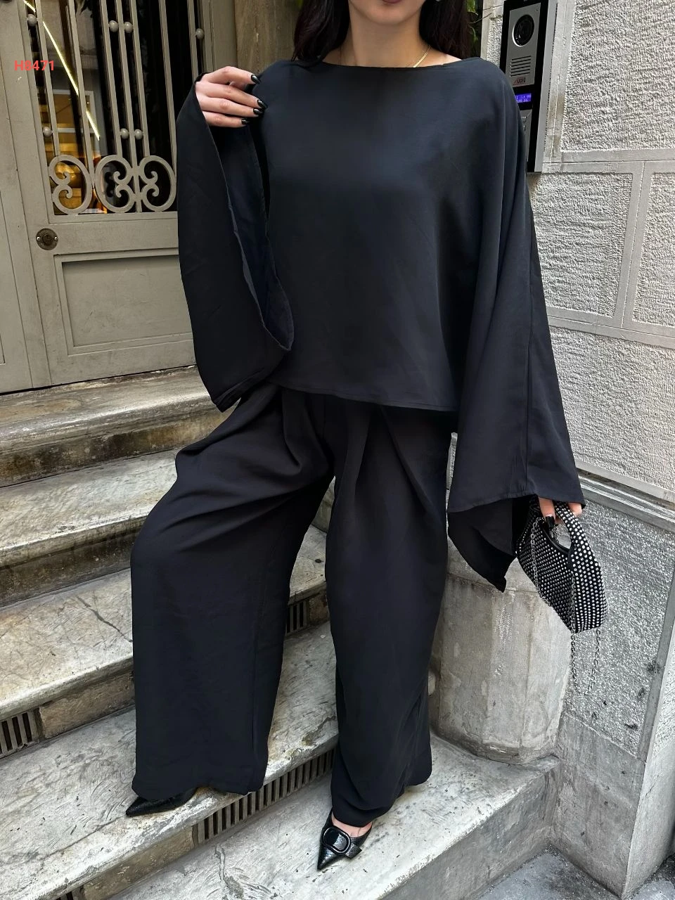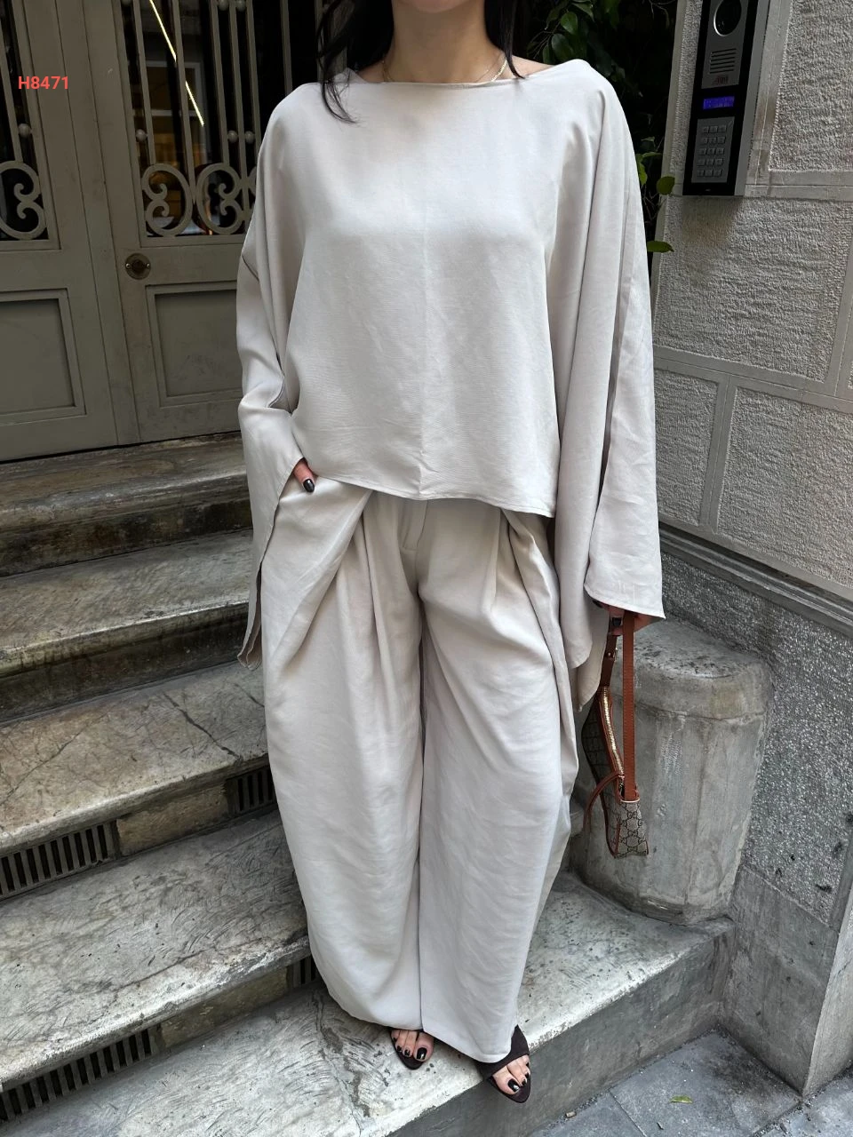 طقم بنطال واسع مع بلوزة