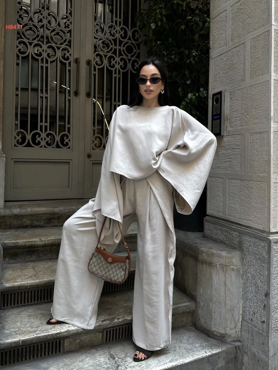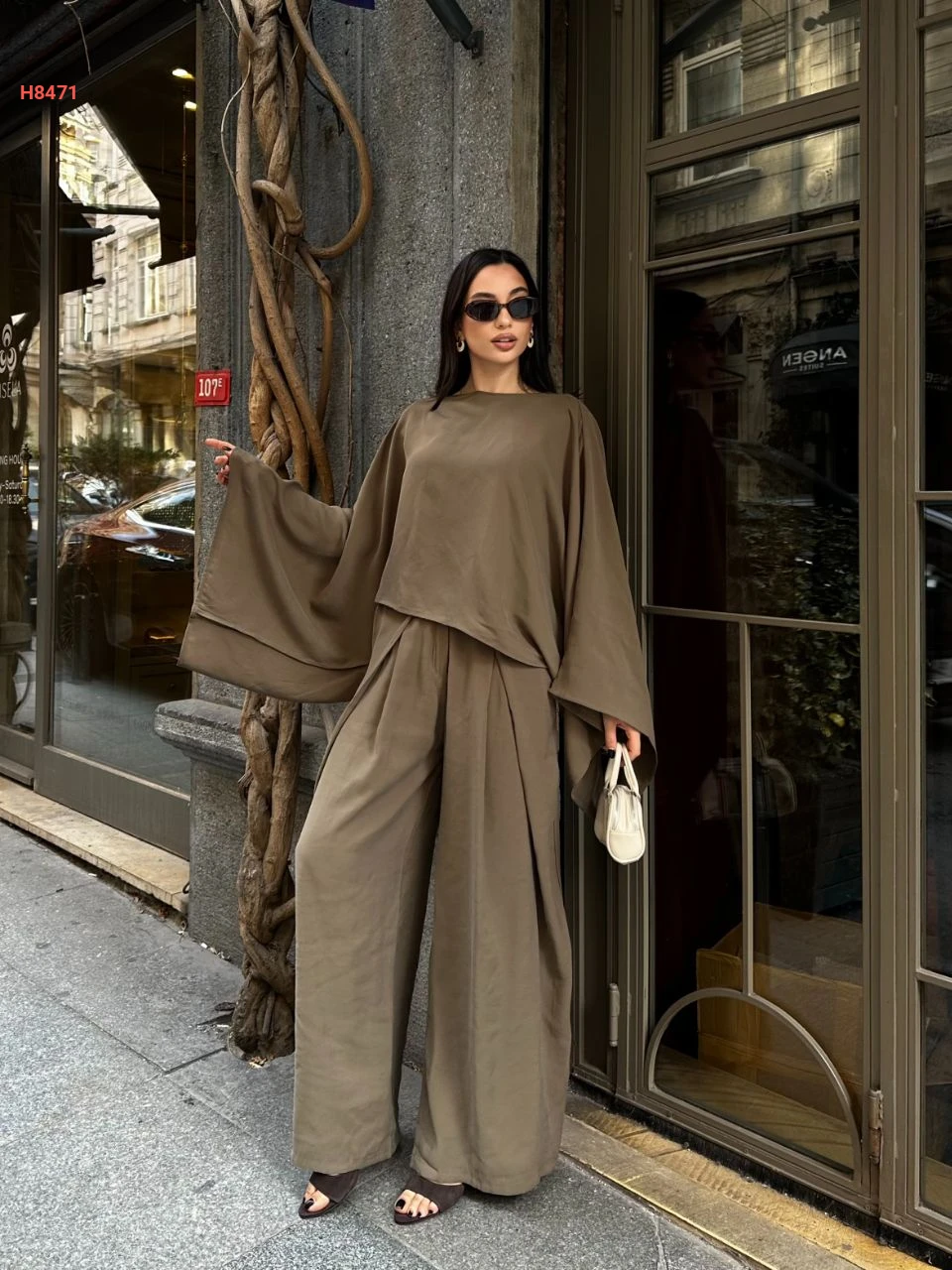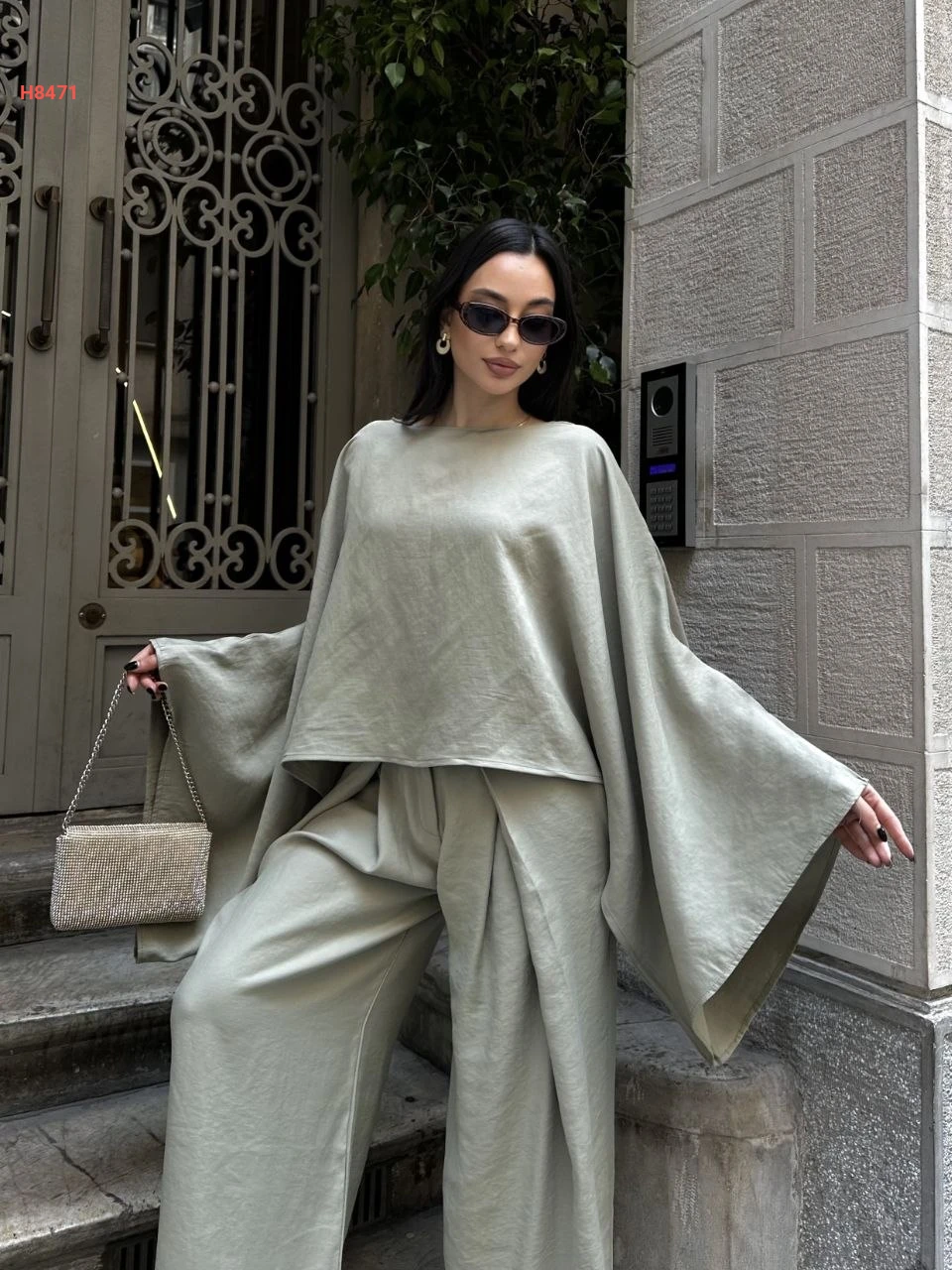 طقم بنطال واسع مع بلوزة