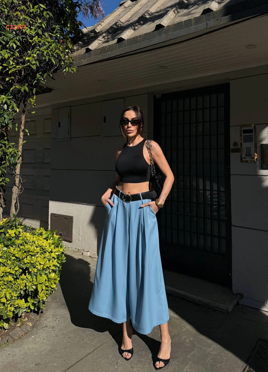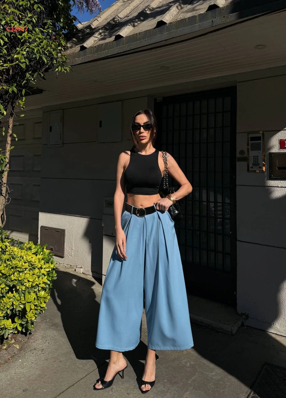 بنطال عريض مع حزام