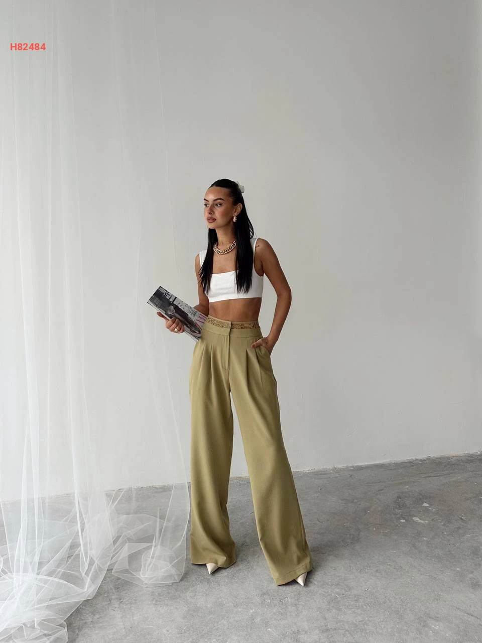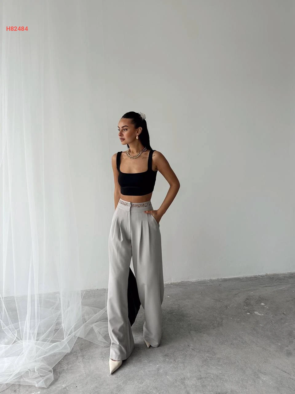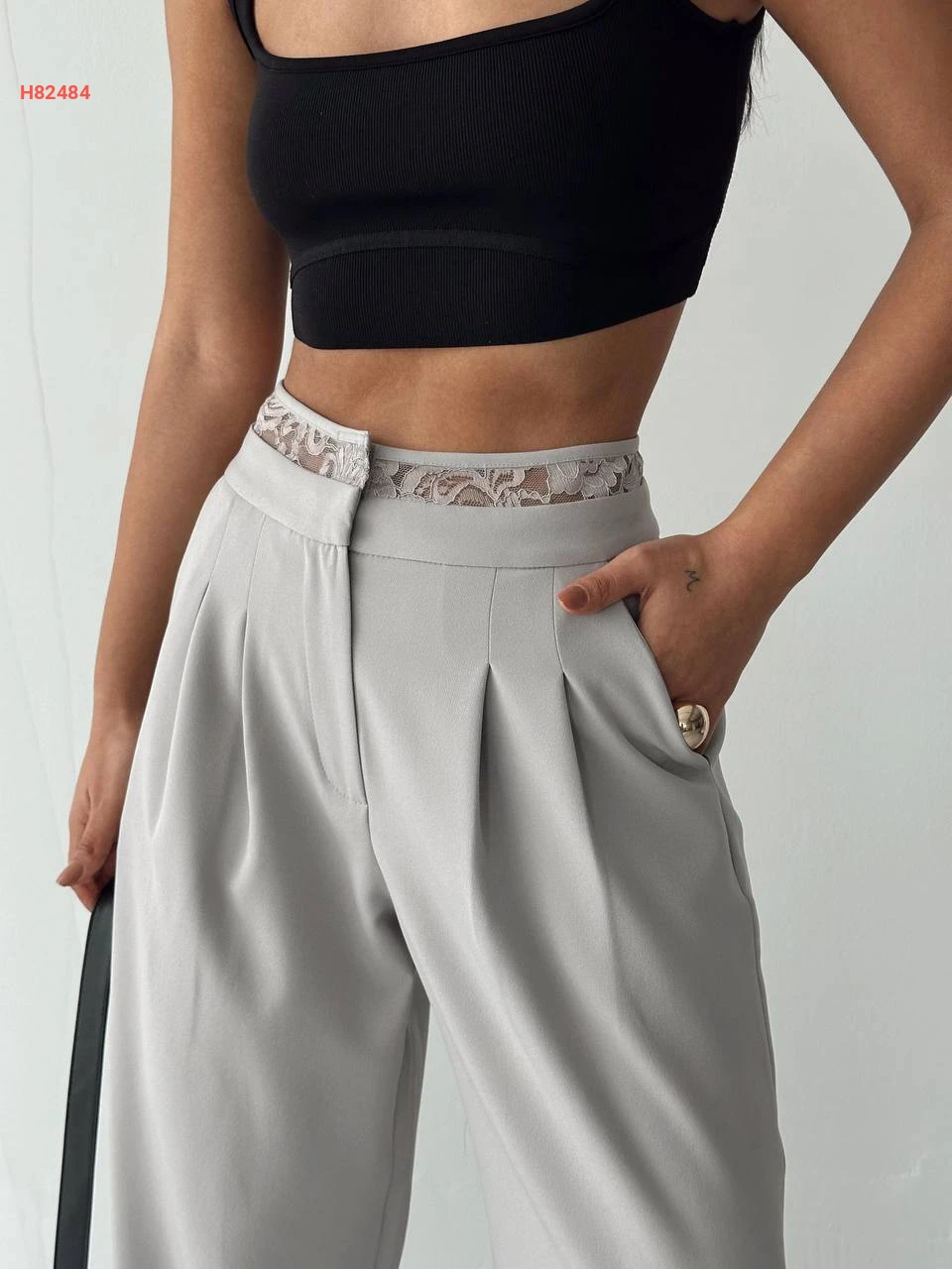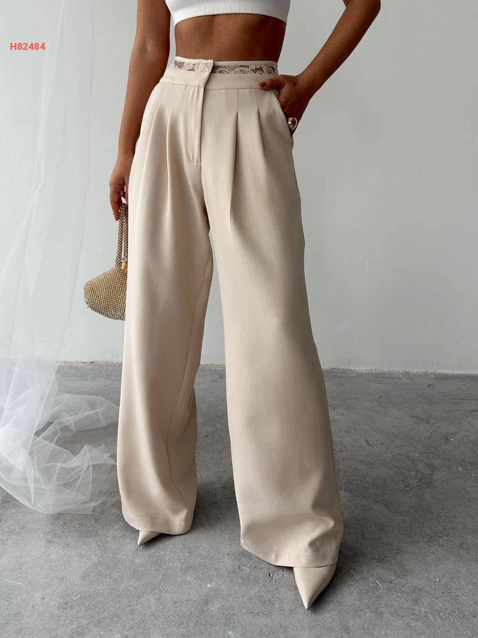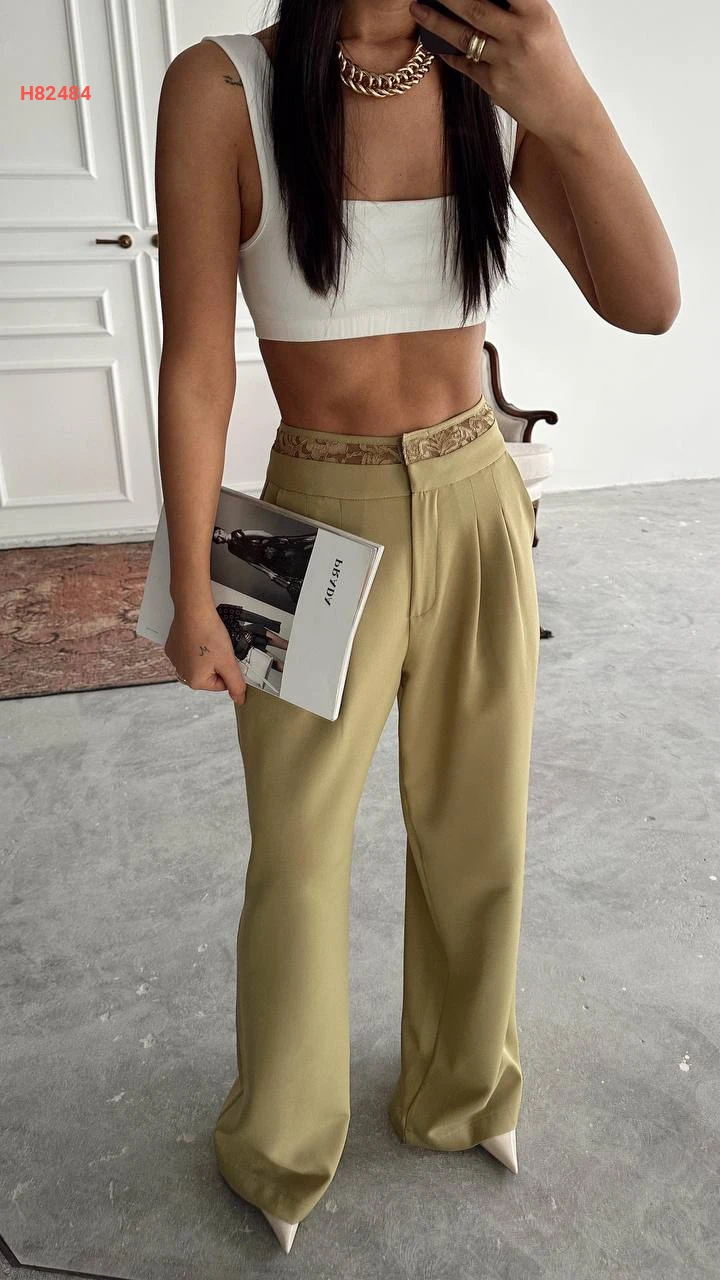 بنطال عريض بدانتيل عالخصر