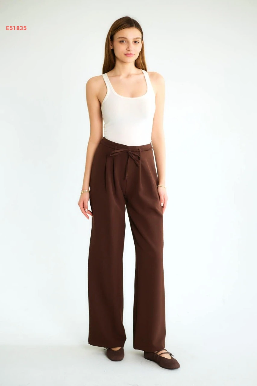 بنطال عريض بربطة عالخصر