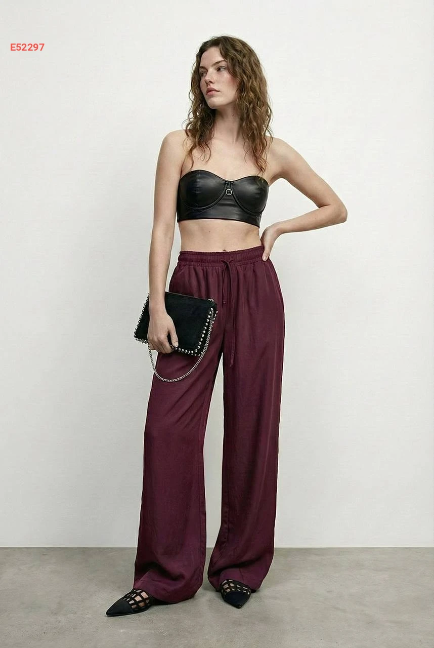 بنطال عريض بخصر مطاط