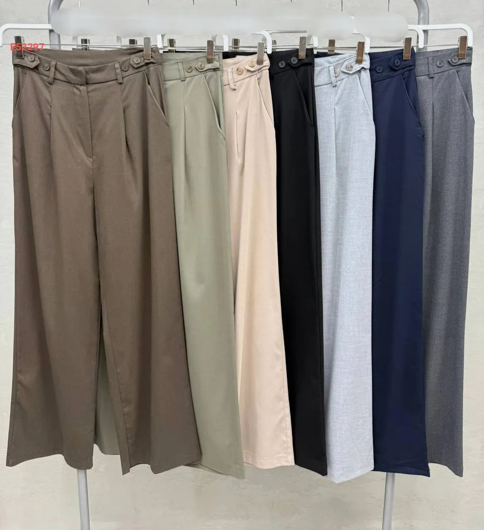 بنطال عريض بأزرار عالخصر