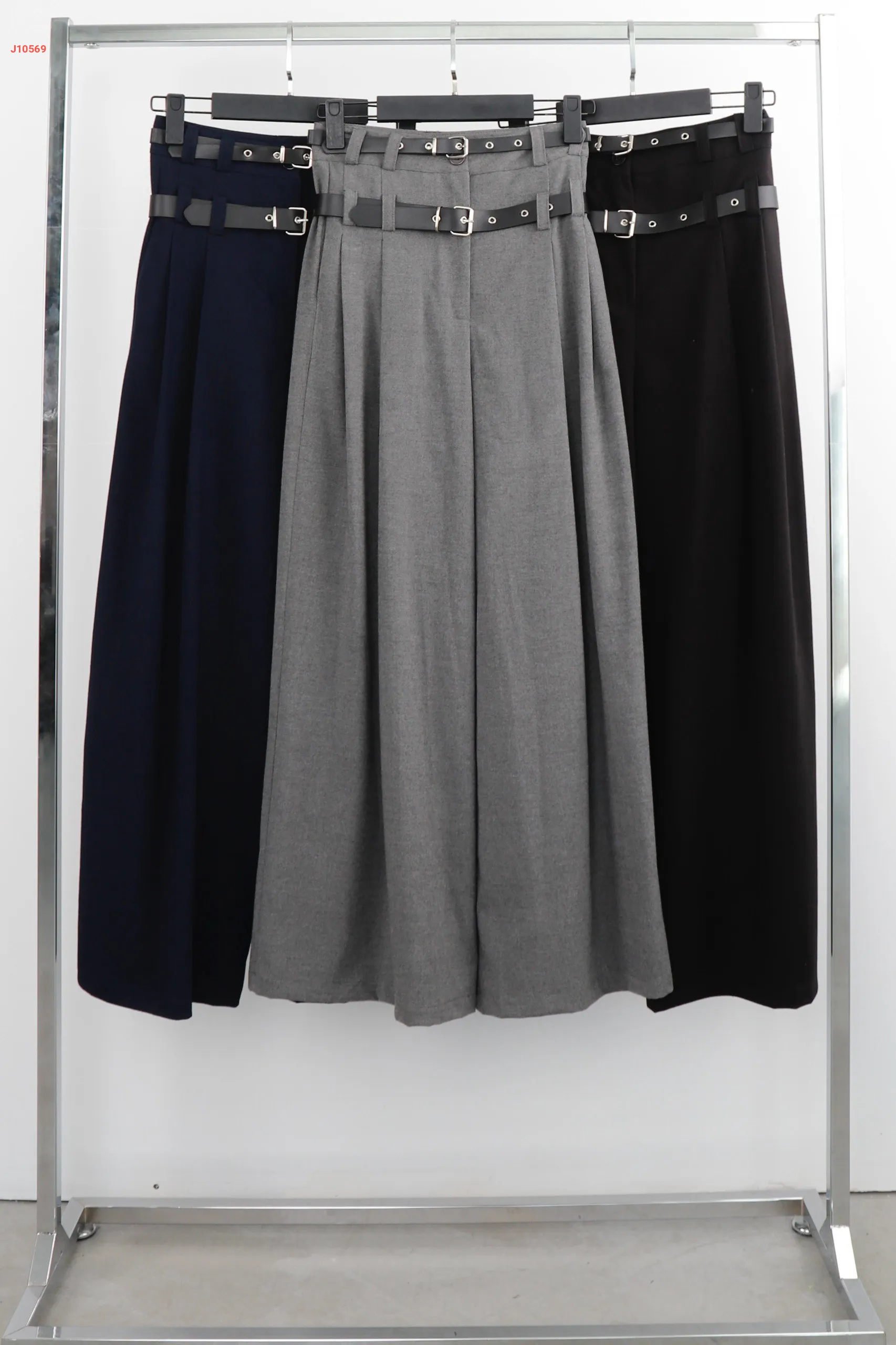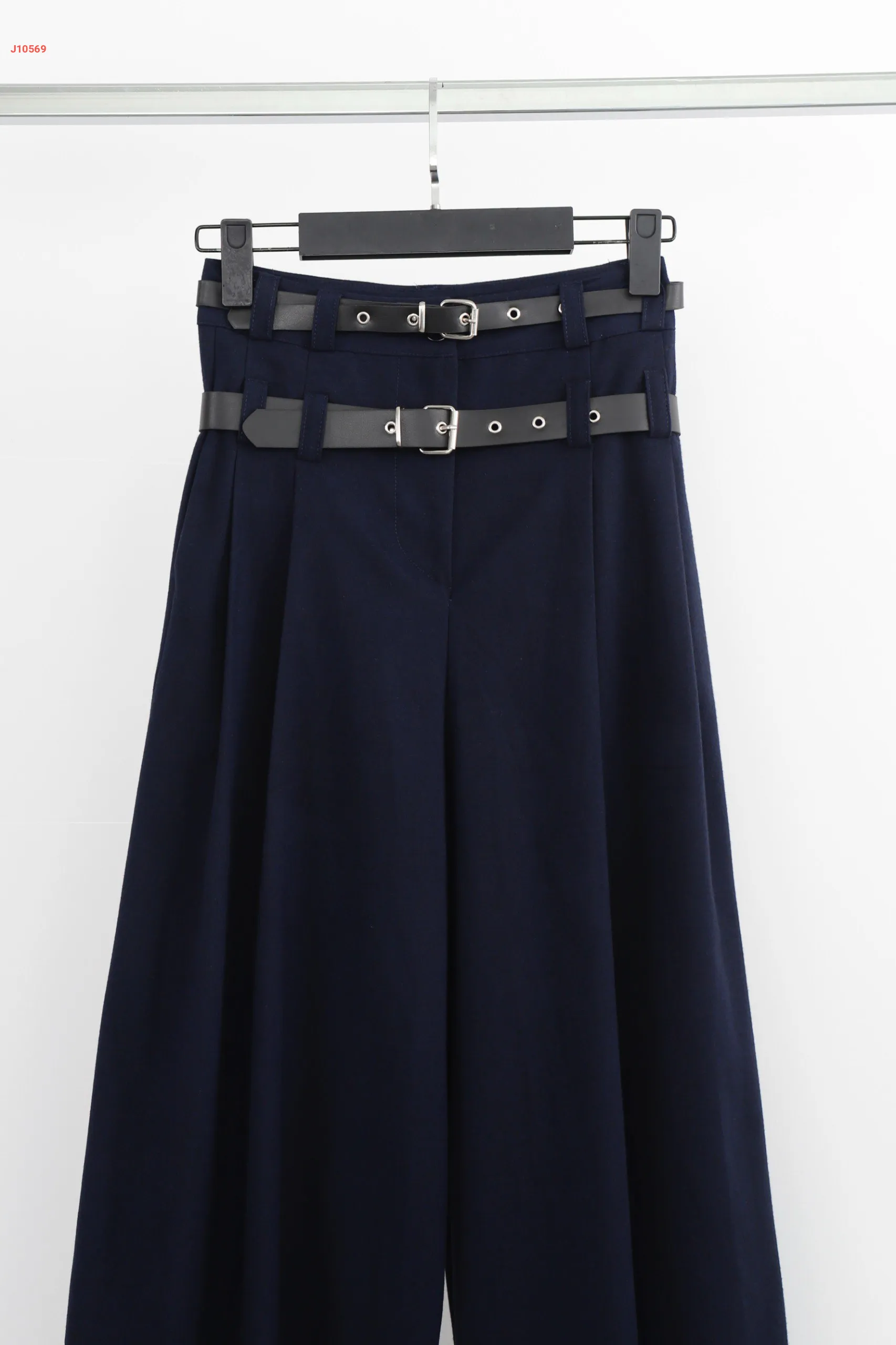 بنطال عريض بحزام مزدوج