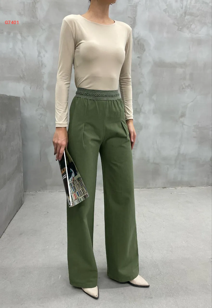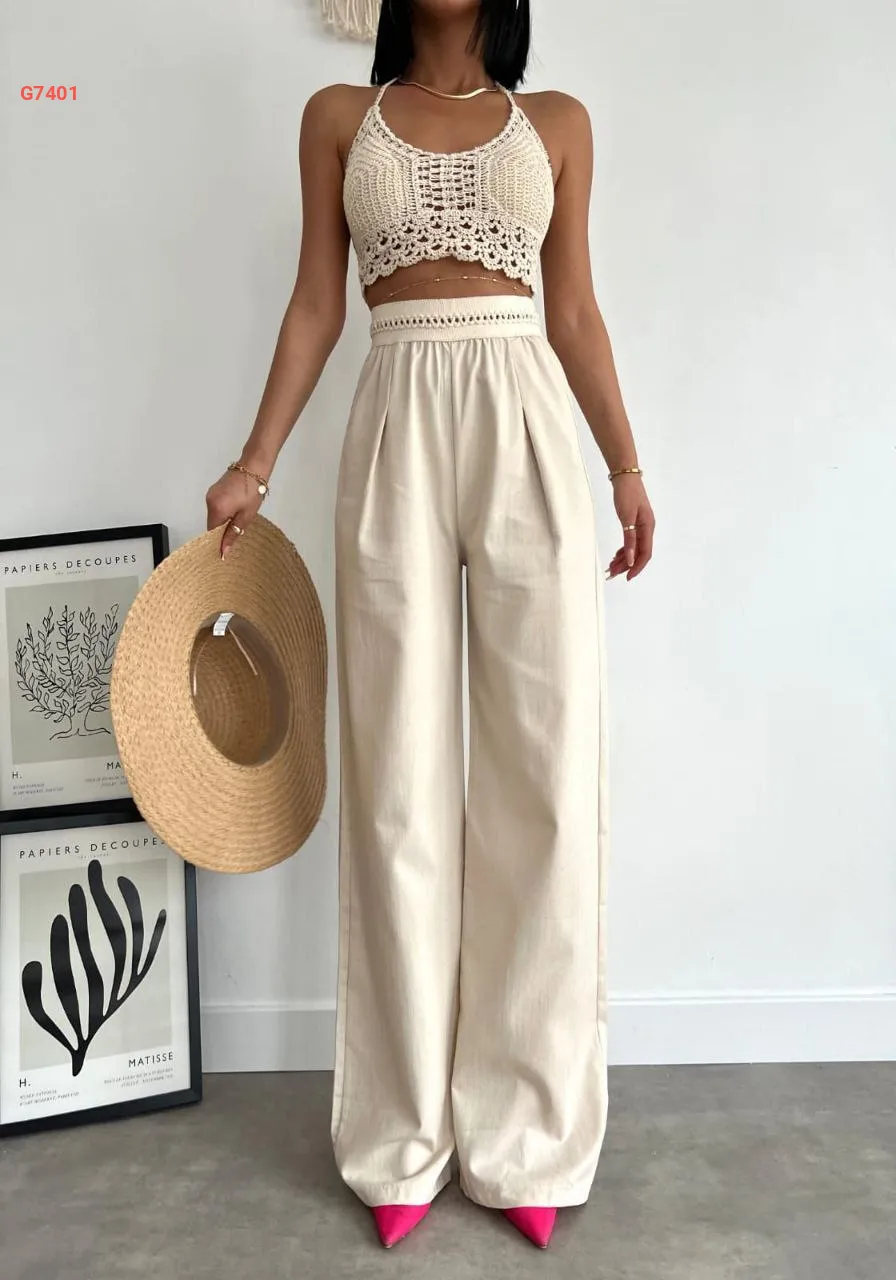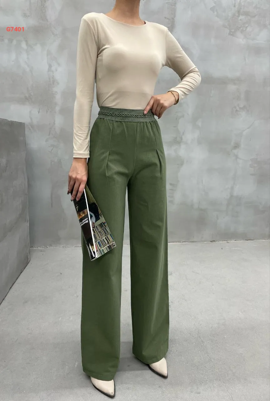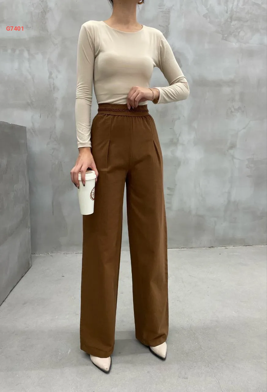 بنطال عريض بتفاصيل مطرزة عالخصر