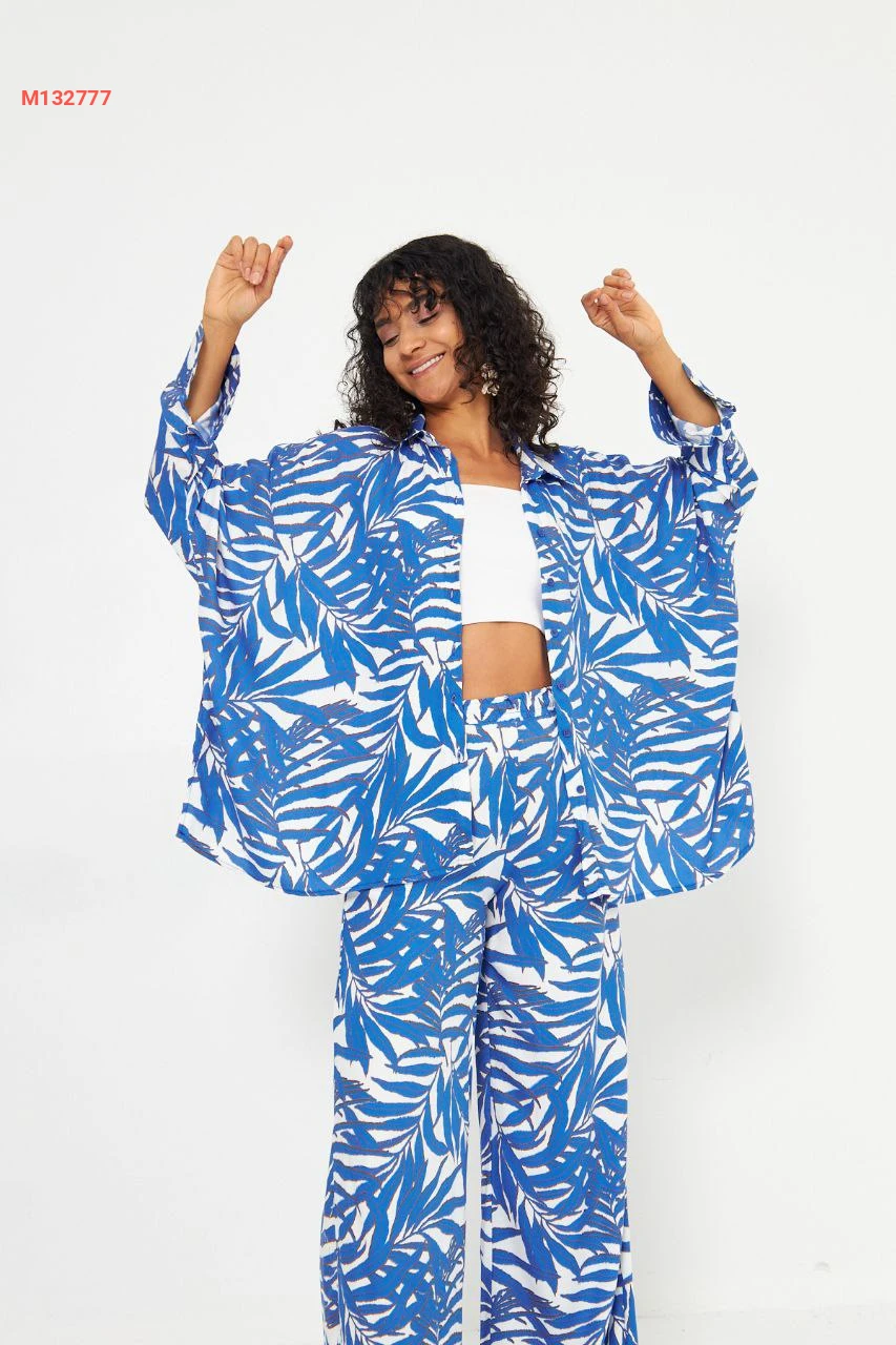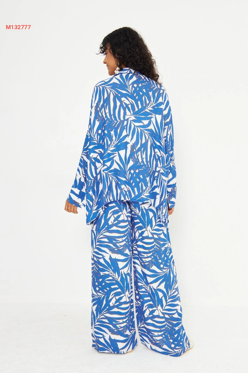 طقم بنطال واسع منقوش مع قميص