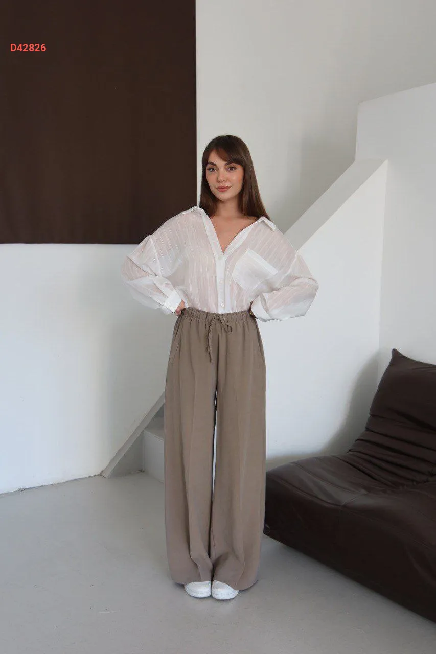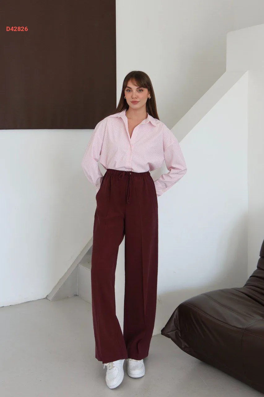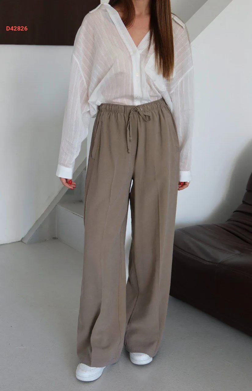 بنطال سادة واسع، مع زمة خصر ، وجيب