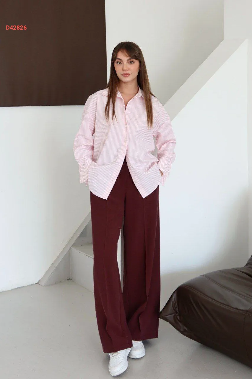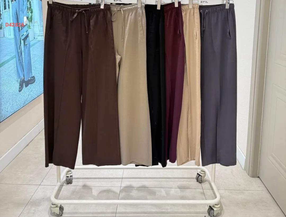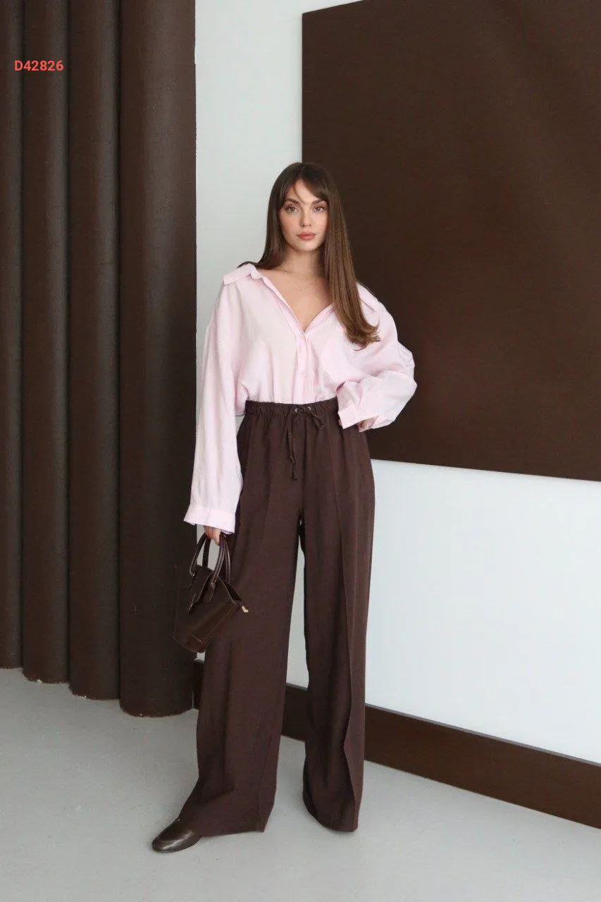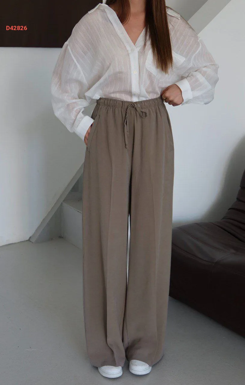 بنطال سادة واسع، مع زمة خصر ، وجيب
