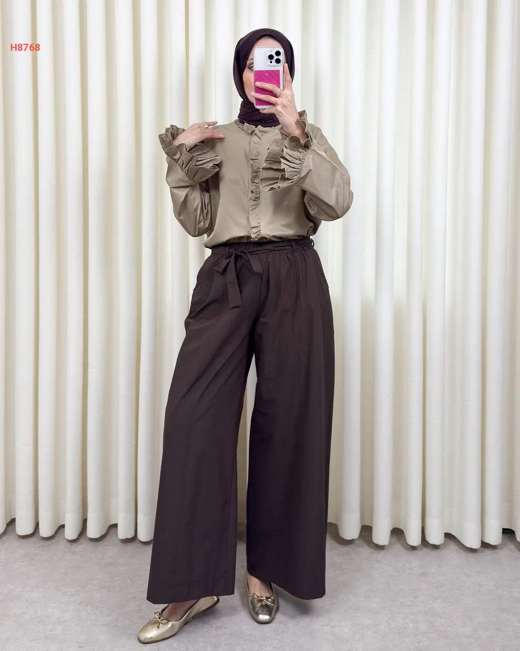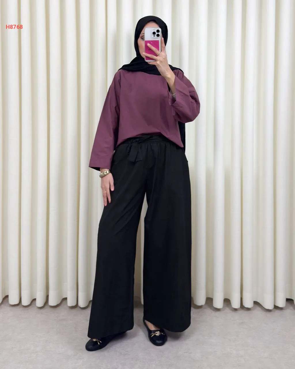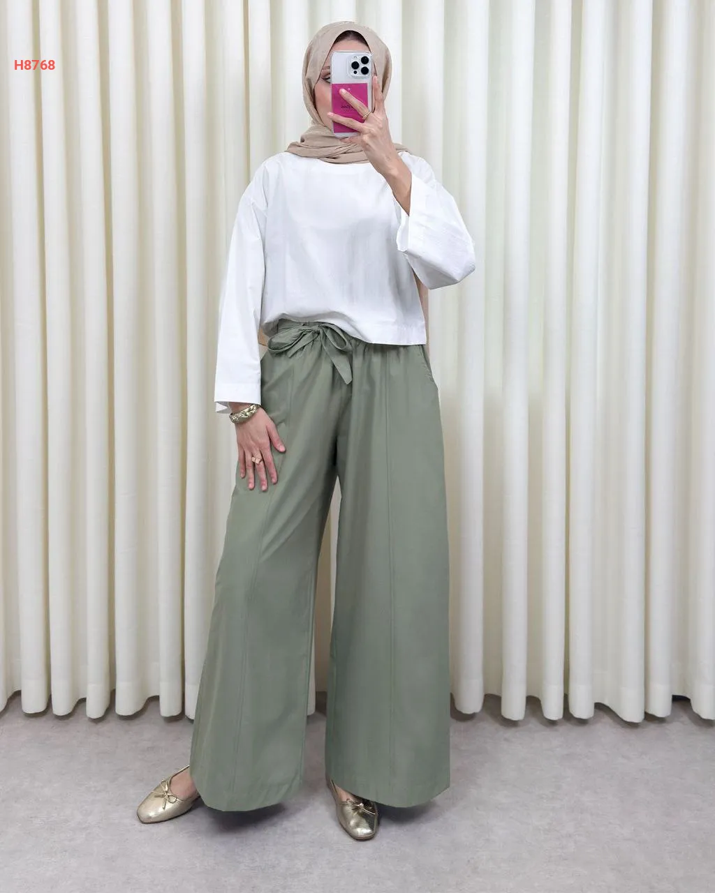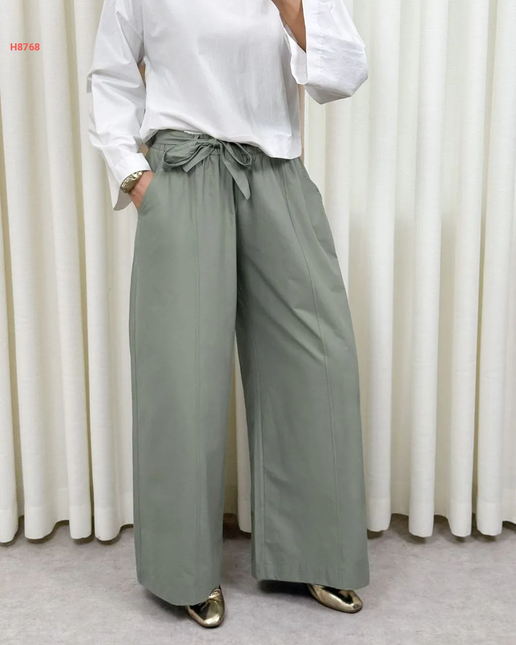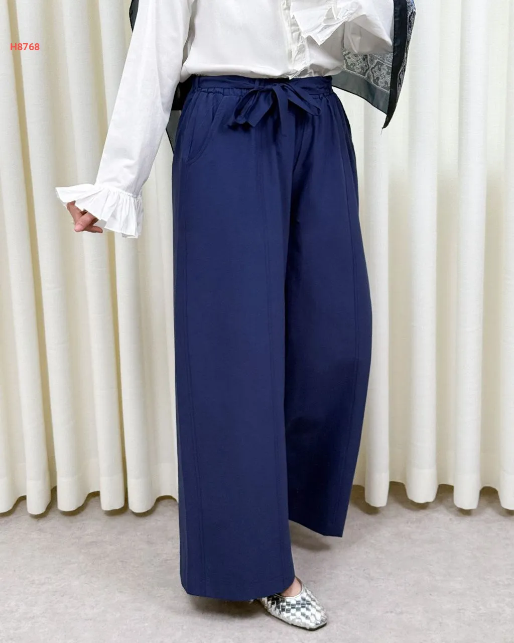 بنطال سادة واسع مع ربطة خصر