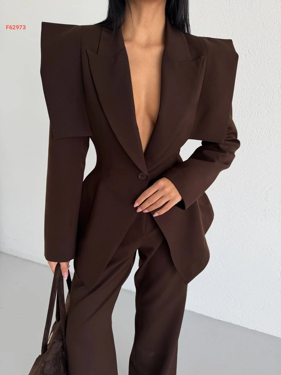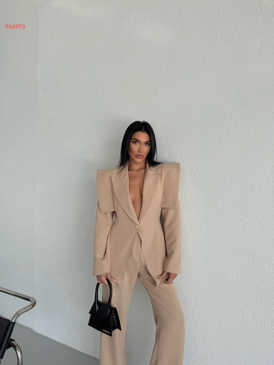 طقم بنطال وبليزر بأكتاف واسعة